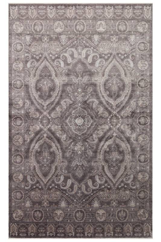 Atlas Serisi Halı Gri Uşak Desen Saçaklı Lyocell Dokulu Özel Tezgah Salon Halısı