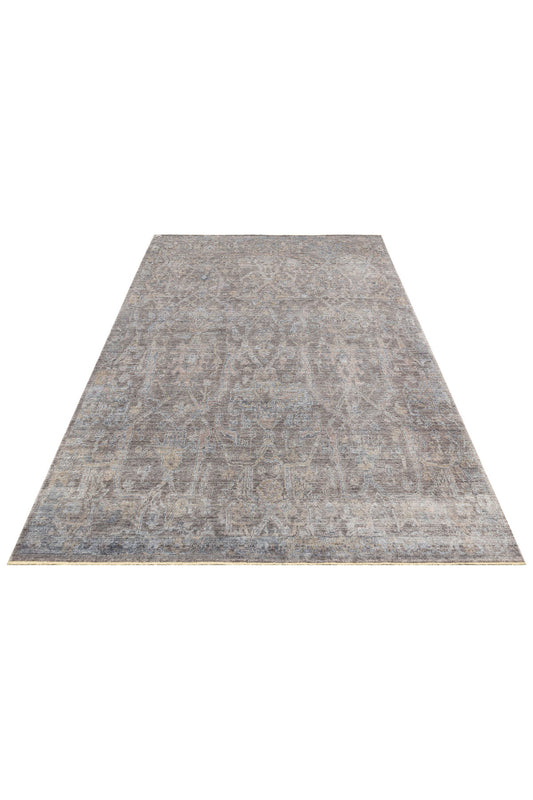 Atlas Serisi Halı Gri Bronze Uşak Desen Saçaklı Lyocell Dokulu Özel Tezgah Salon Halısı