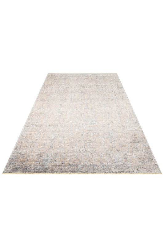 Atlas Serisi Halı Bej Gri Uşak Desen Saçaklı Lyocell Dokulu Özel Tezgah Salon Halısı