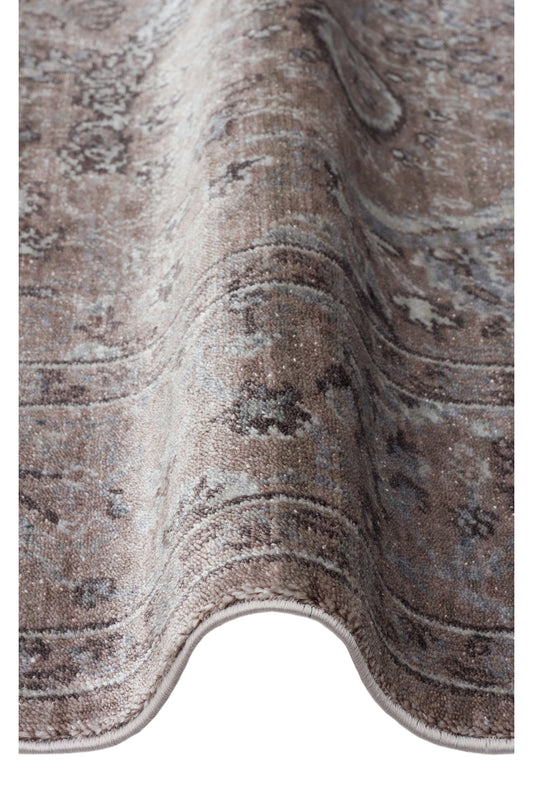 Atlas Serisi Halı Vizon Uşak Desen Saçaklı Lyocell Dokulu Özel Tezgah Salon Halısı