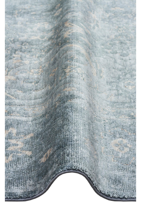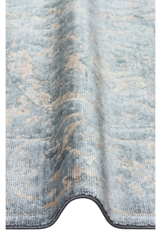 Atlas Serisi Halı Vizon Mavi Uşak Desen Saçaklı Lyocell Dokulu Özel Tezgah Salon Halısı
