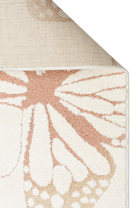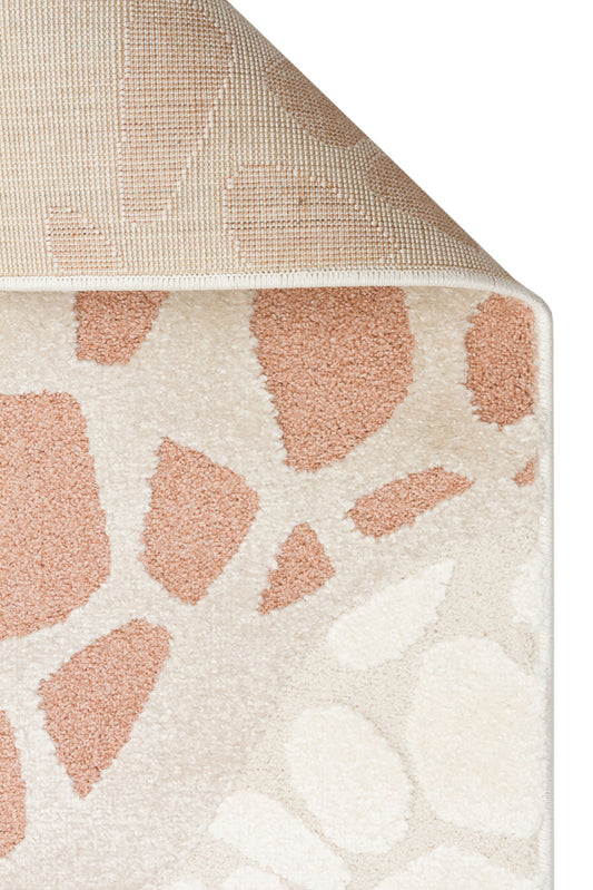 Petit Desenli Bej Renk Yuvarlak Toz Vermeyen Yumuşak Dokulu Makinede Yıkanabilir Çocuk Odası Halısı - Beyaz