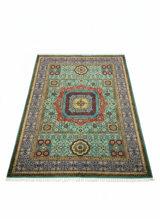 El Emeği İran Memlük Halısı – Orijinal El Dokuma Klasik Desenli Lüks Salon Halısı - Yeşil1
