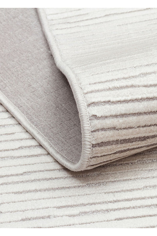 Royal Gri Renk Modern Çizgili Desenli Parlak Viskon Halı Yumuşak Dokulu Salon Halısı - Gri