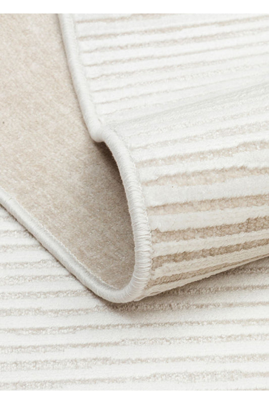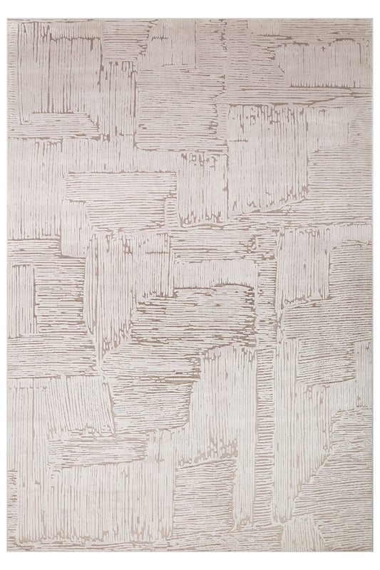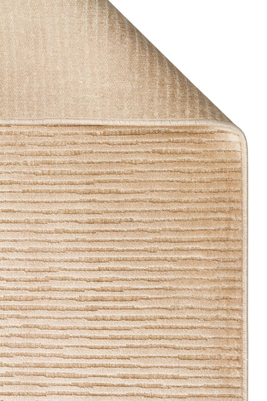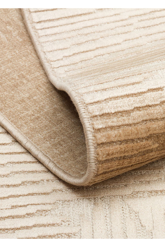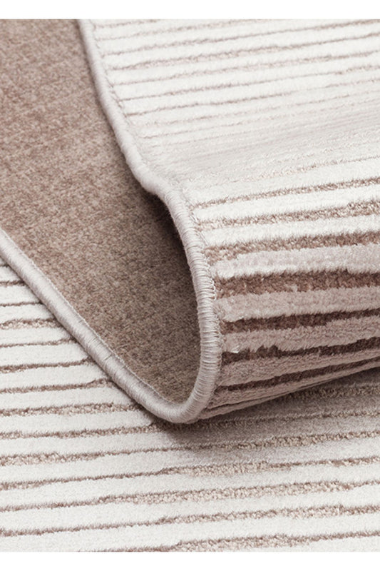 Royal Taş Rengi Çizgi Desenli Modern Parlak Viskon Halı Yumuşak Lüks Salon Halısı - Taş Rengi