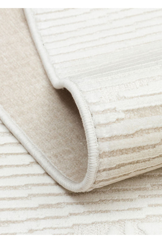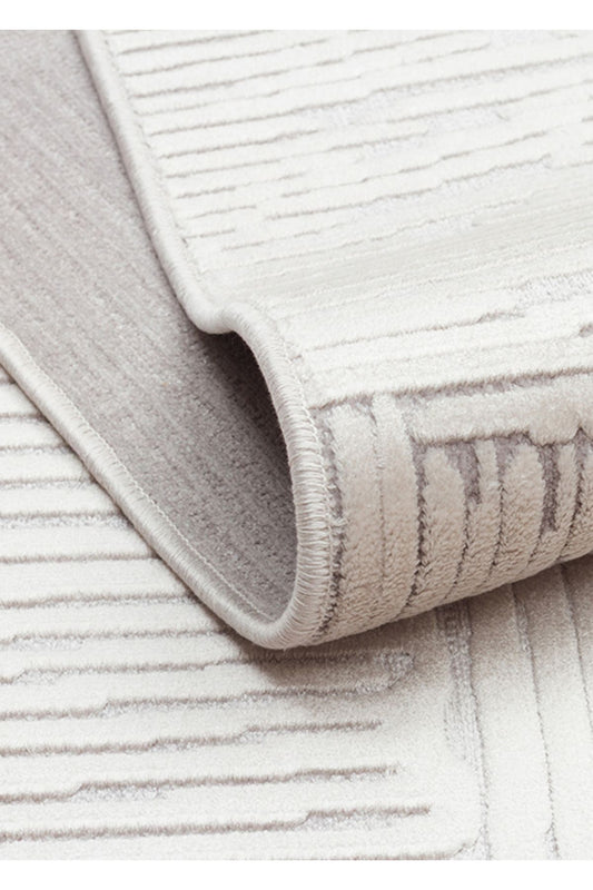 Royal Beyaz Renk Geometrik Desenli Parlak Viskon Modern Salon Halısı Yumuşak - Beyaz