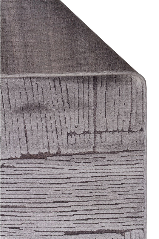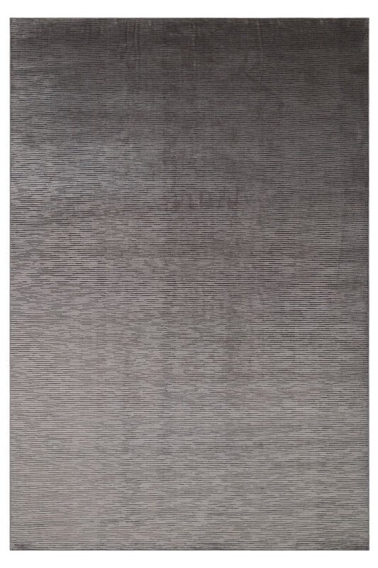 Royal Antrasit Renk Çizgi Desenli Modern Parlak Viskon Yumuşak Lüks Salon Halısı - Antrasit
