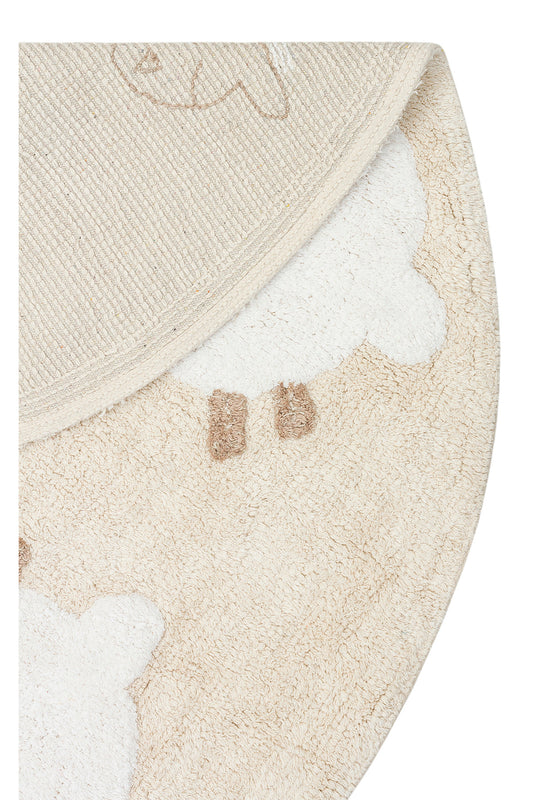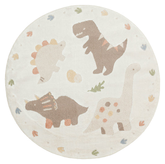 Picco Figürlü Yuvarlak Yıkanabilir Hav Vermeyen Toz Tutmayan Yumuşak Dokulu Çocuk Odası Halısı - Ekru