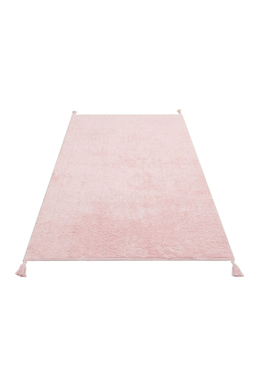 Bonny Düz Bej Rengi Minimal Yıkanabilir Kaydırmaz Taban Yumuşak Yüzeyli Çocuk Odası Halısı - Pembe