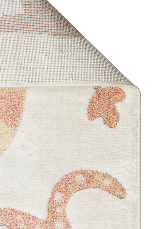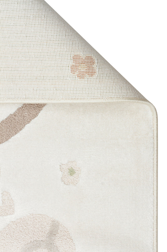 Bonny Desenli Bej Rengi Yıkanabilir Kaydırmaz Taban Yumuşak Yüzeyli Çocuk Odası Halısı - Krem