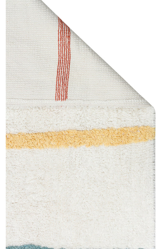 Bonny Çocuk Odası Halısı Çizgili Çok Renkli Yıkanabilir Kaydırmaz Tabanlı Pamuk Yumuşak Yüzeyli - Ekru