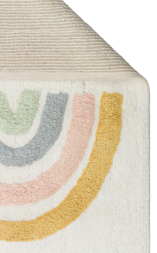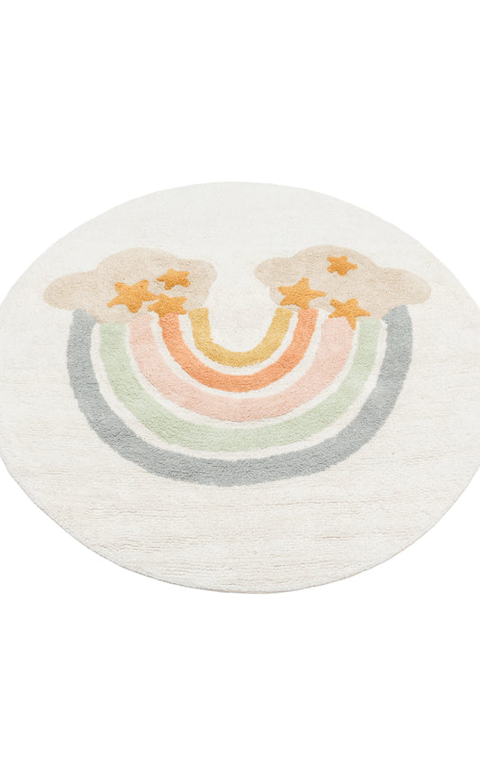 Bonny Gökkuşağı Desenli Yuvarlak Çocuk Odası Halısı Yıkanabilir Kaydırmaz Taban Yumuşak Yüzeyli - Bej