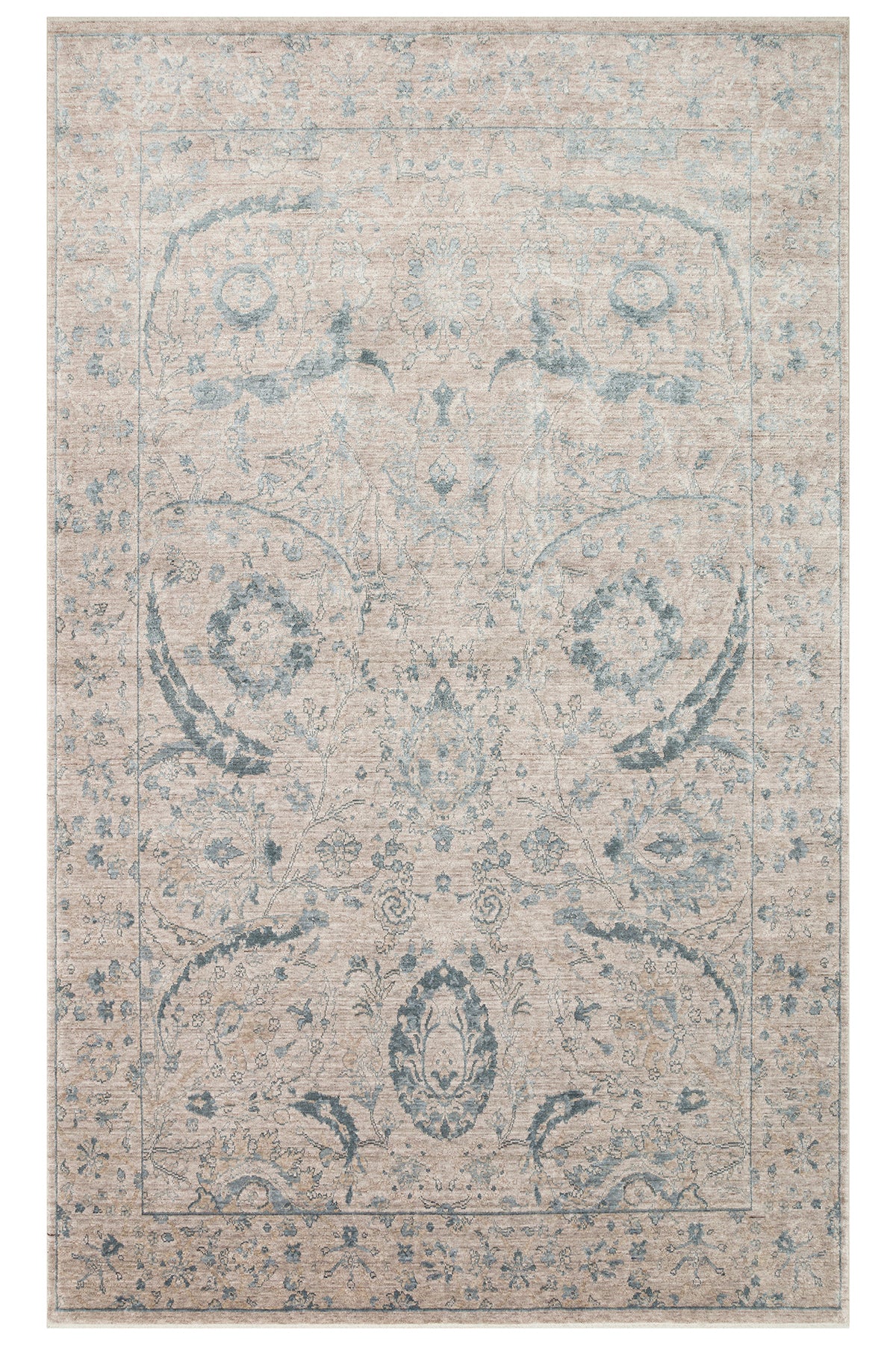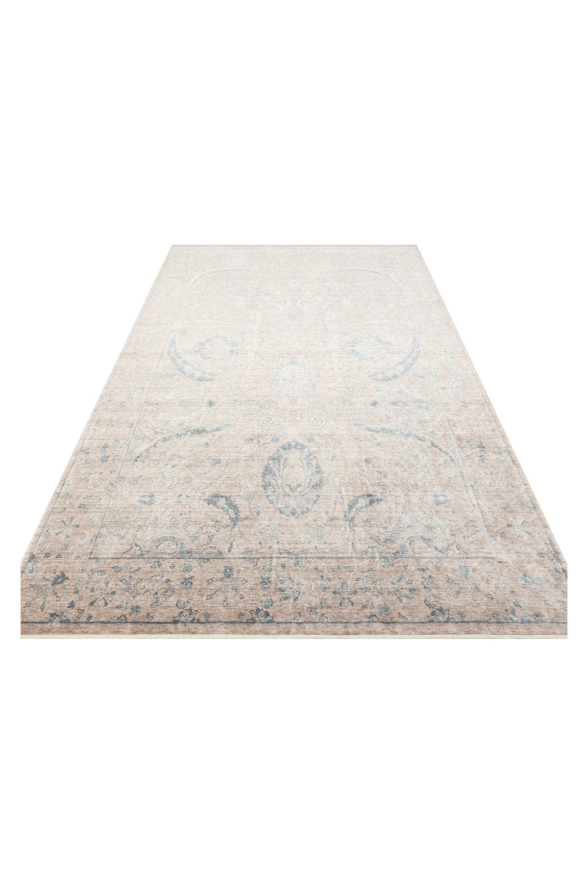 Atlas Serisi Halı Vizon Mavi Uşak Desen Saçaklı Lyocell Dokulu Özel Tezgah Salon Halısı