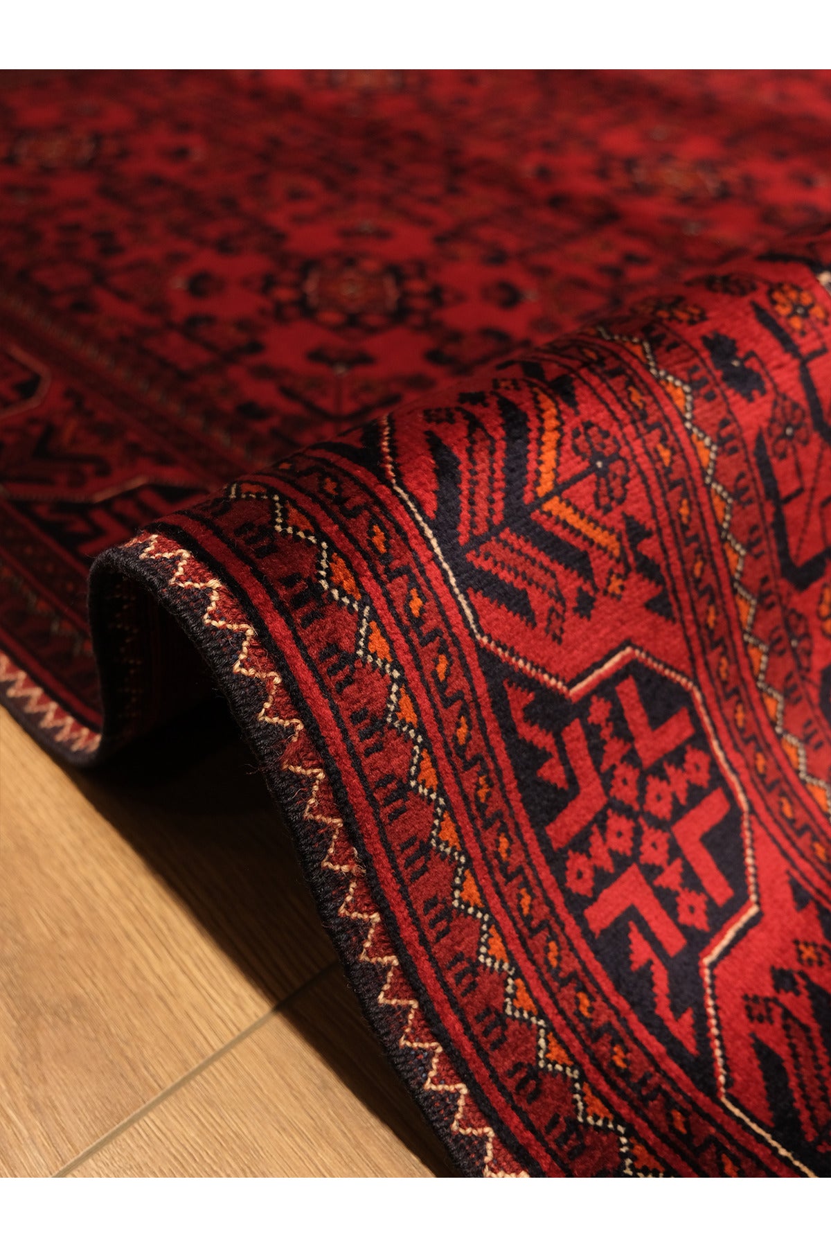 The hand-woven Afghan Bilicik rug is a luxurious, entirely handcrafted rug reflecting Afghanistan's deep-rooted carpet-making expertise. Woven with 100% natural wool yarn, this special Afghan rug maintains its form and aesthetics for many years thanks to its high knot quality and tight weave structure. Traditional Afghan motifs, enriched with the depth of burgundy tones, give the space a strong, sophisticated, and timeless character. Each rug stands out from mass-produced rugs due to its unique hand-woven structure, adding a prestigious atmosphere to any setting. Ideal for living rooms, lounges, and distinguished living spaces, the Afghan Bilicik rug complements a luxurious decor concept with its natural materials, substantial weight, and authentic texture. Technical Information: • Weaving Type: Hand-woven • Origin: Afghanistan • Model: Bilicik • Yarn Type: 100% Natural Wool • Pile Height: Medium pile • Pattern: Traditional Afghan Motifs • Color: Predominantly burgundy • Backing: Hand-woven natural backing