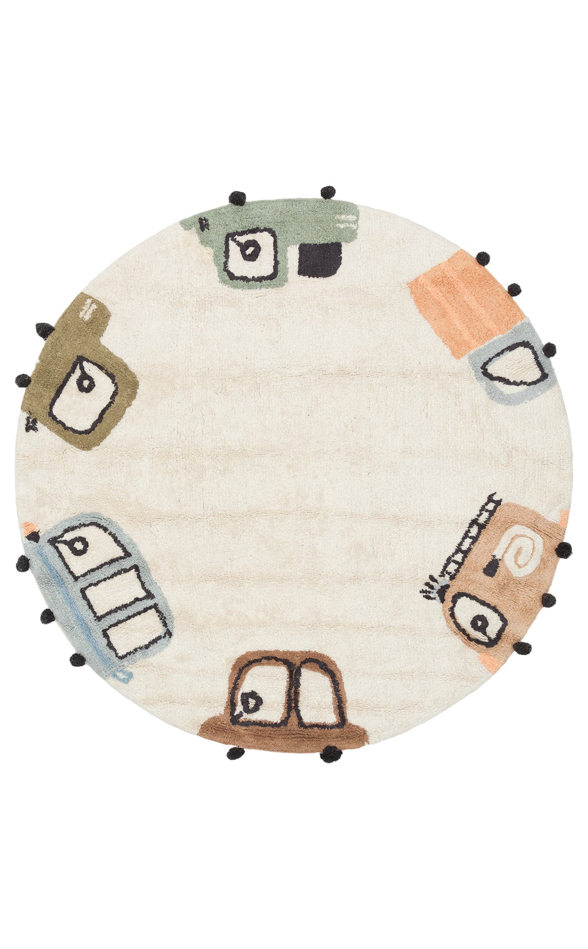 Bonny Araba Desenli Yuvarlak Yıkanabilir Kaydırmaz Taban Yumuşak Yüzeyli Çocuk Odası Halısı - Yeşil