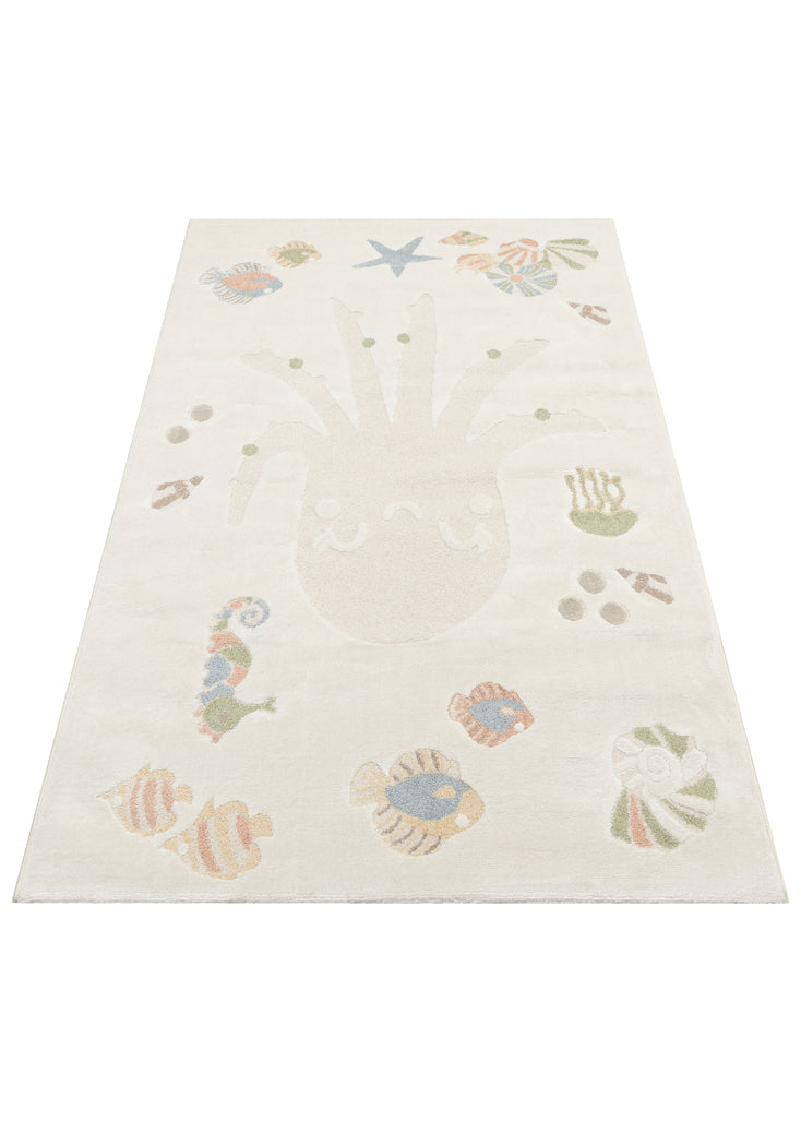 Picco Renkli Figürlü Yıkanabilir Hav Vermeyen Toz Tutmayan Yumuşak Dokulu Çocuk Odası Halısı - Beyaz