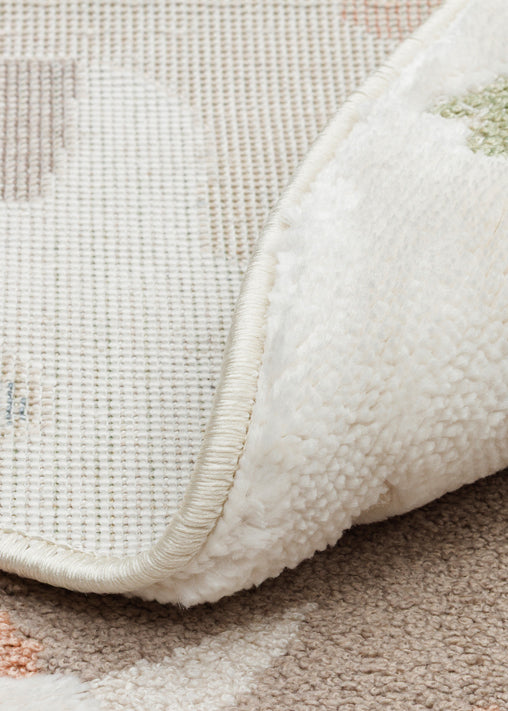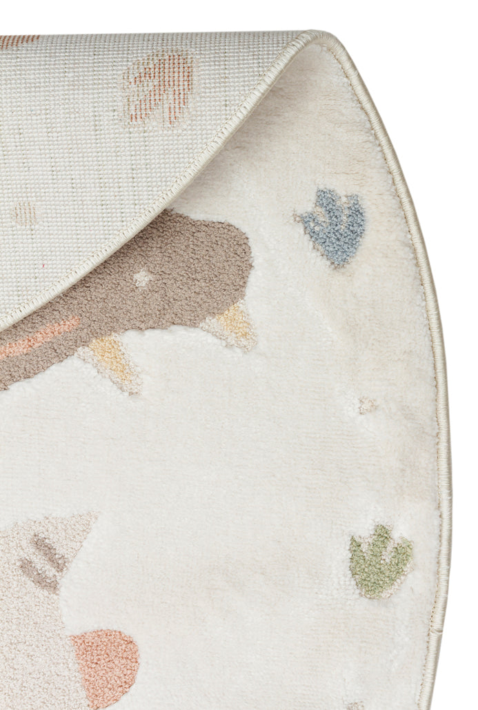 Picco Figürlü Yuvarlak Yıkanabilir Hav Vermeyen Toz Tutmayan Yumuşak Dokulu Çocuk Odası Halısı - Ekru