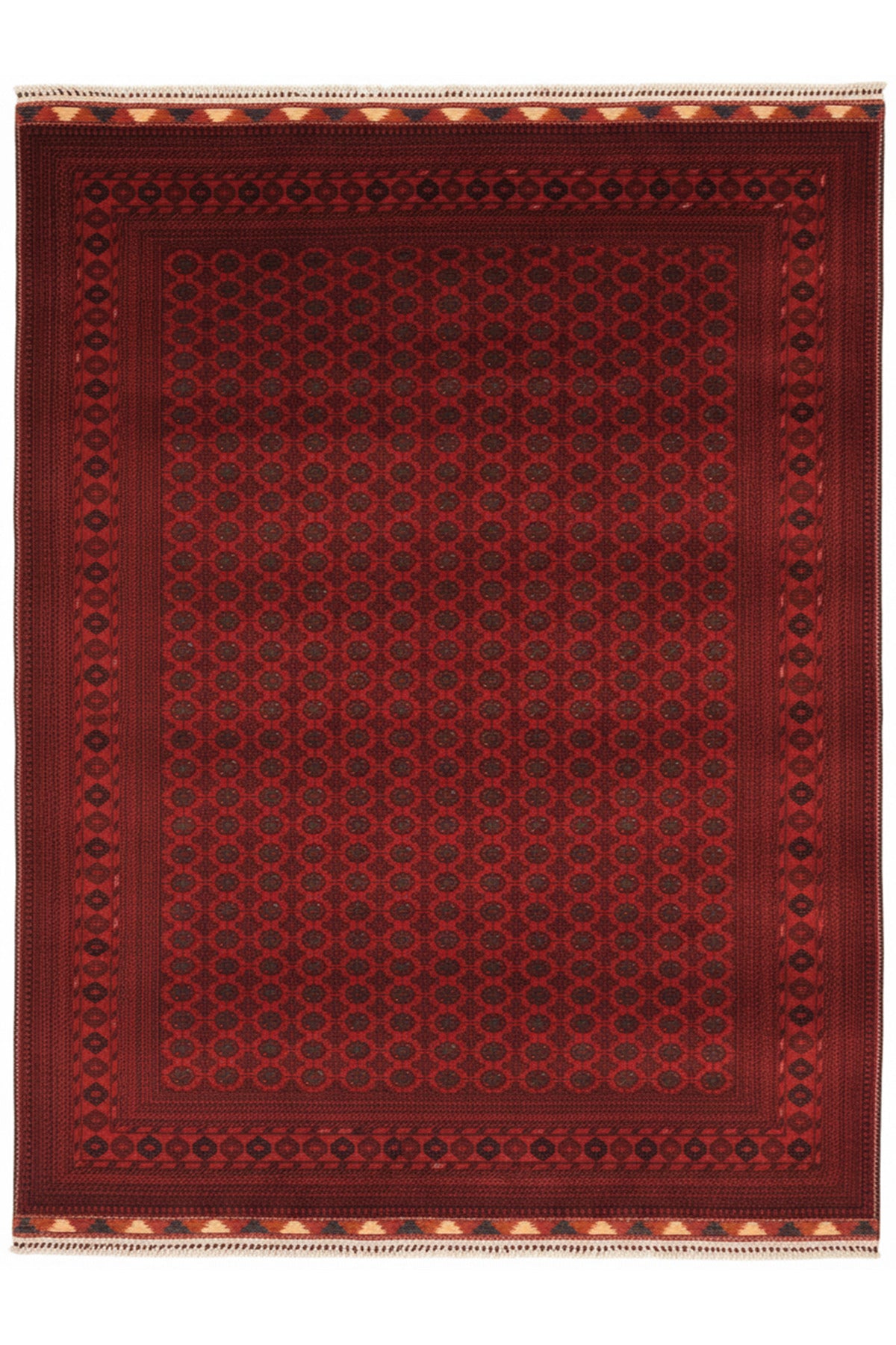 El Dokuma Afgan Biliçik Halısı %100 Yün Kök Boya Geleneksel Afgan Motif Bordo Otantik Salon Halısı - Bordo
