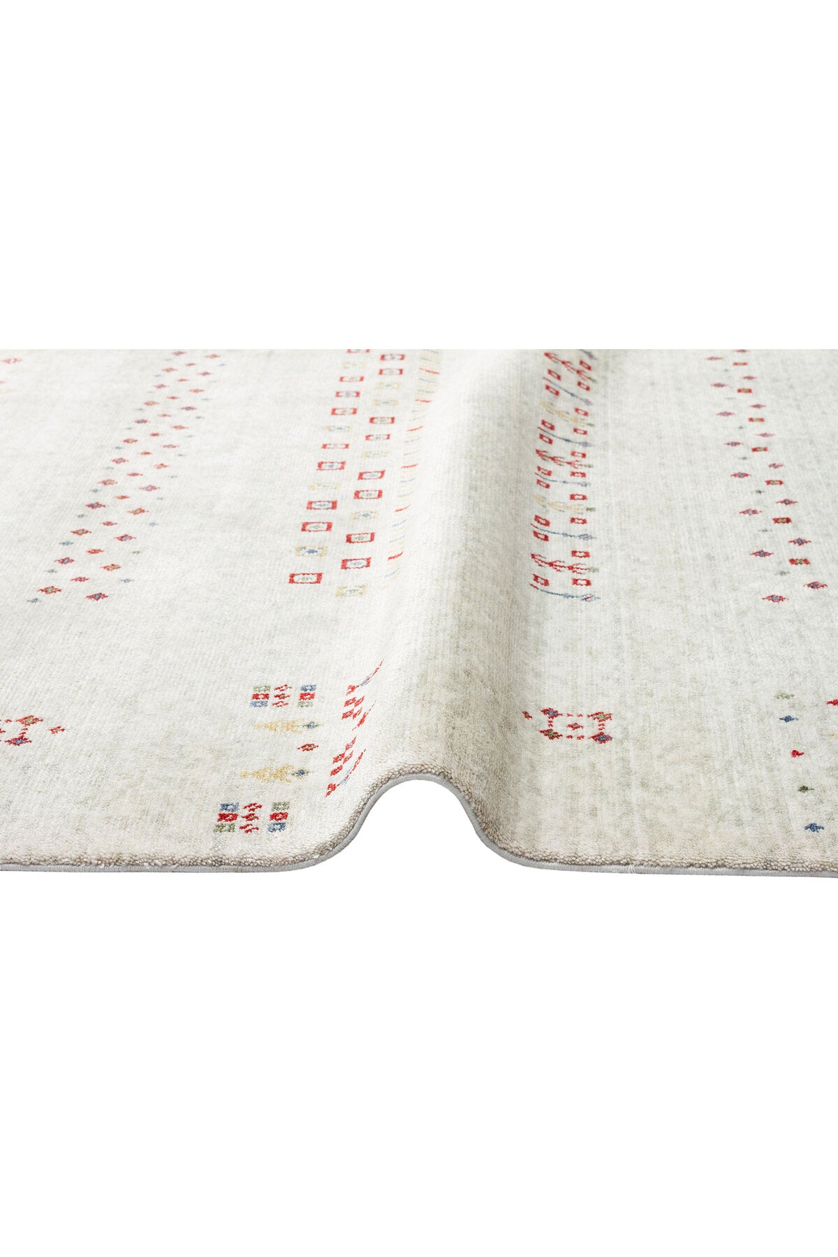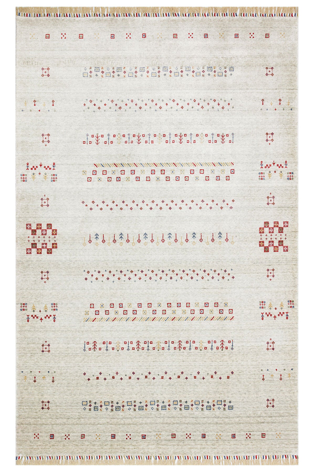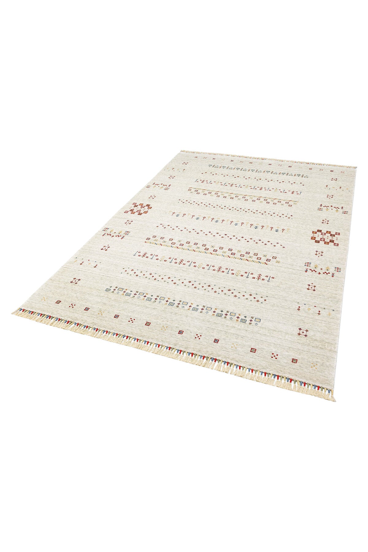 Efsun El Emeği Bej Rengi Lyocell Özel Tezgah Modern Uşak Desenli Saçaklı Salon Halısı