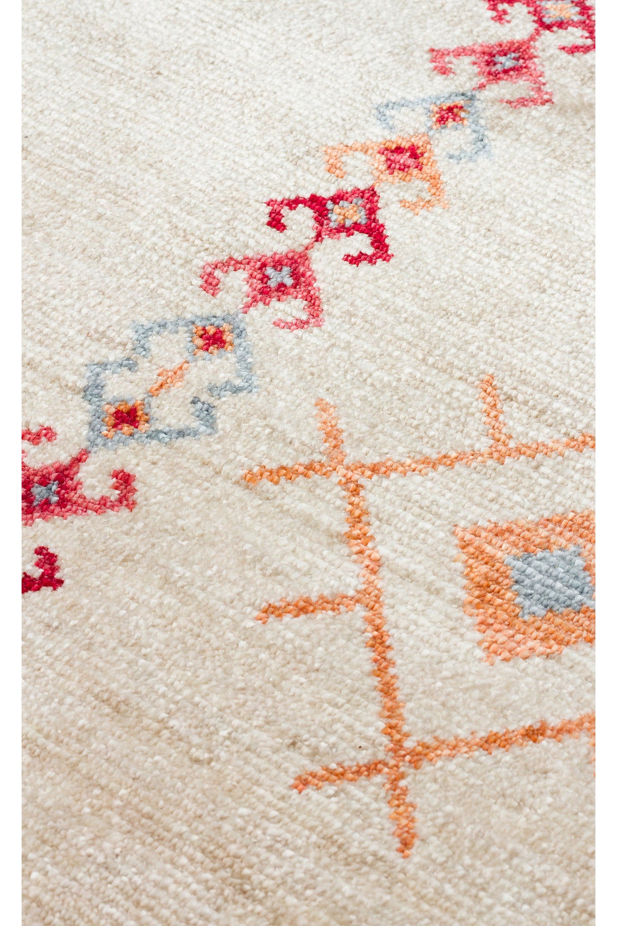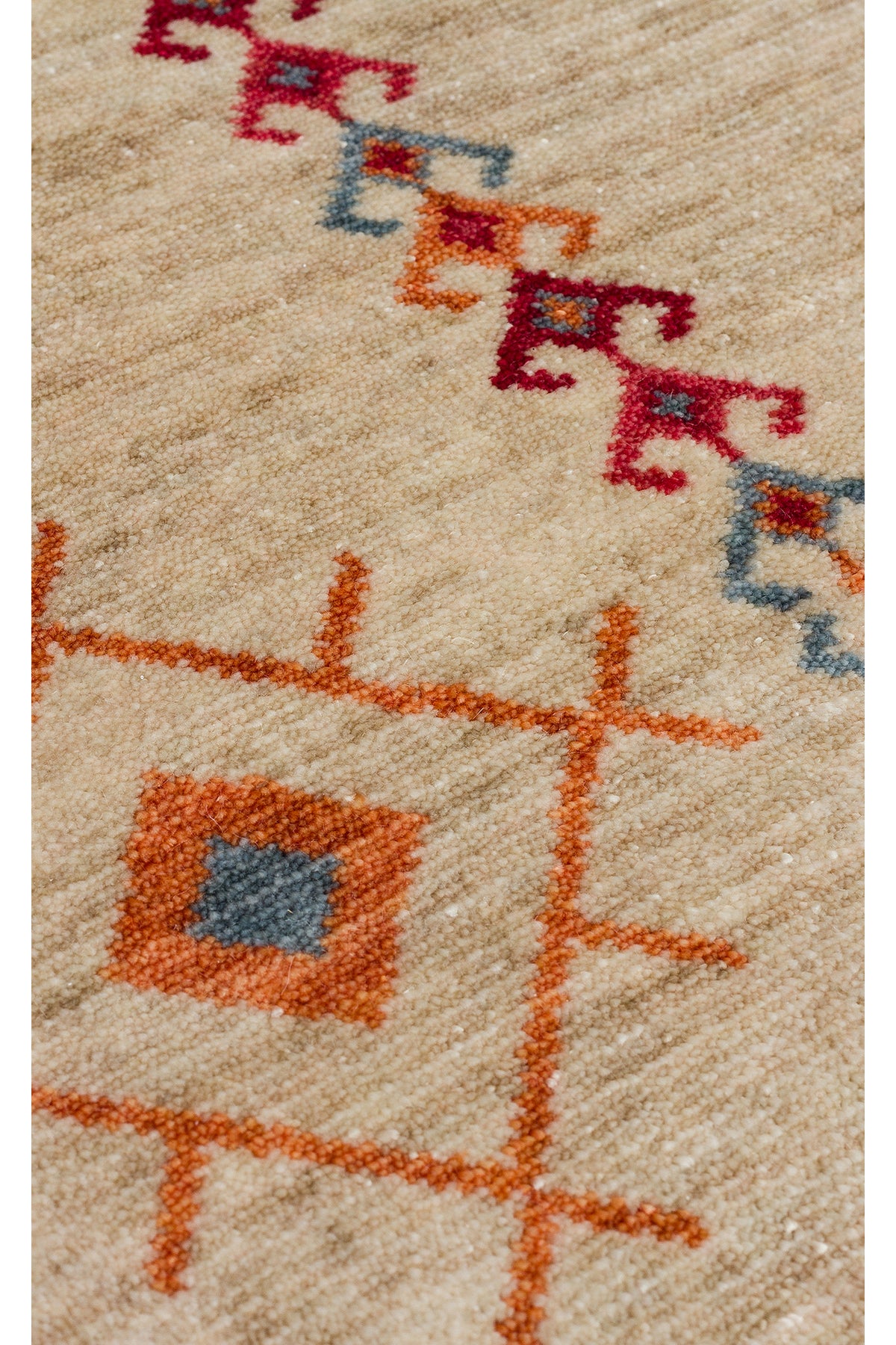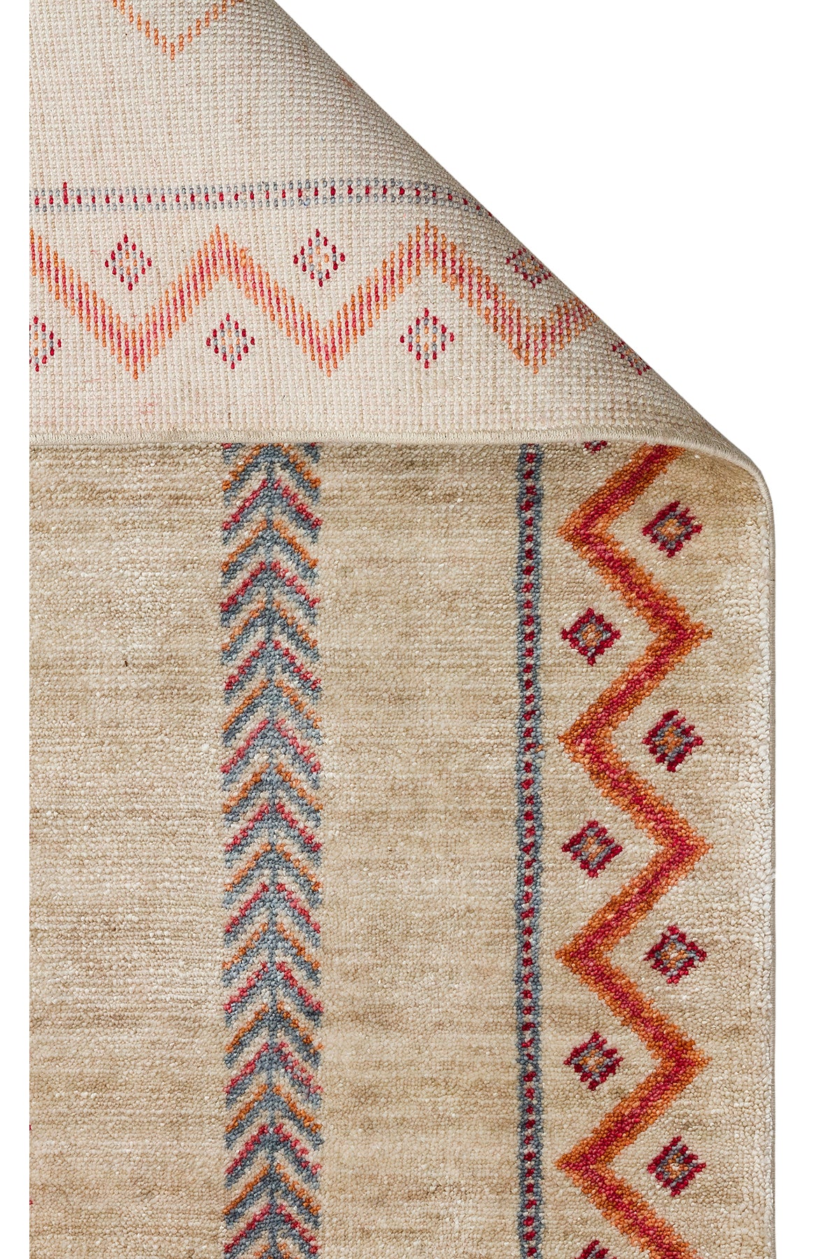 Efsun El Emeği Bej Etnik Çizgili Desen Lyocell Özel Tezgah Saçaklı Salon Halısı