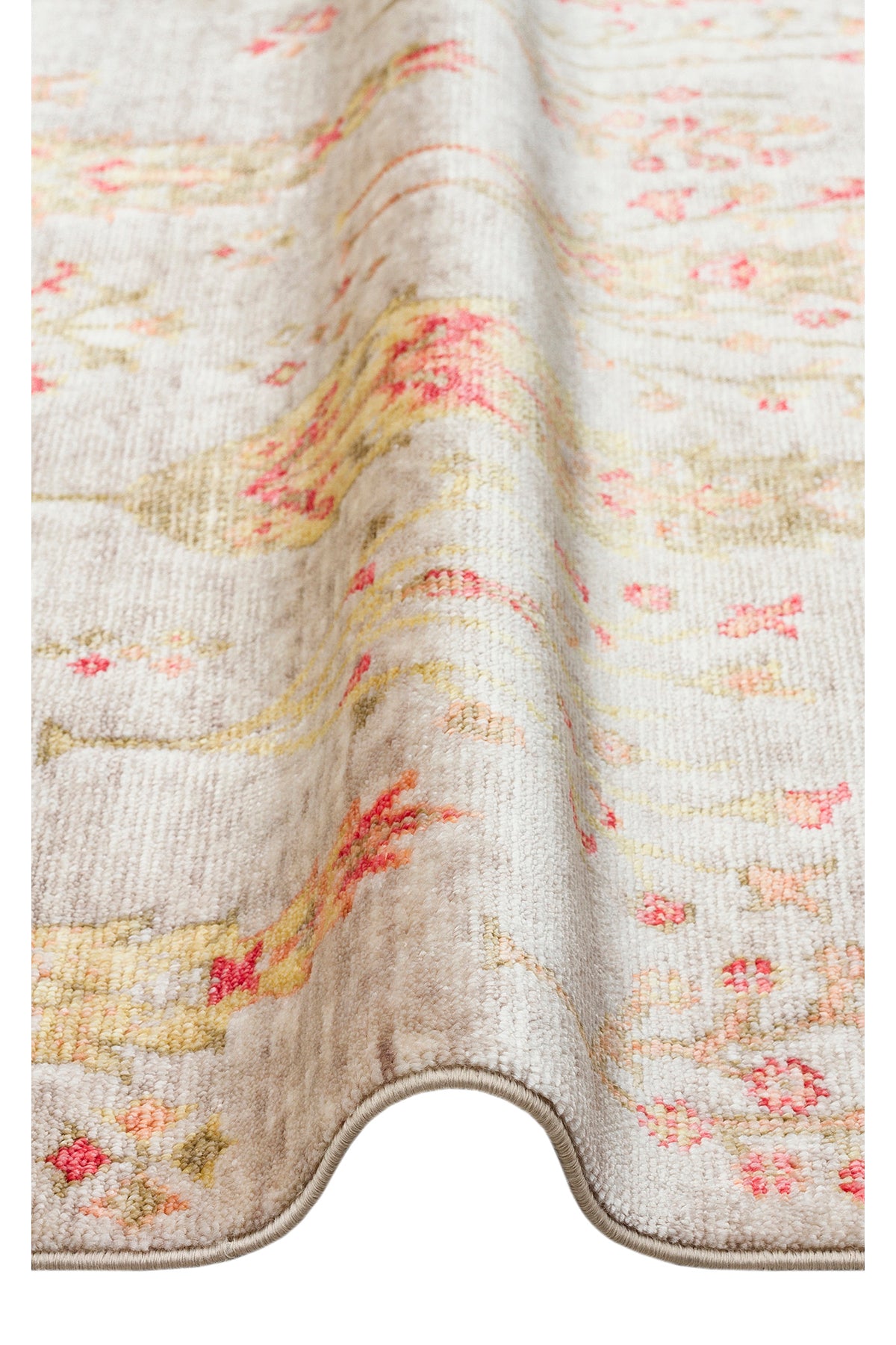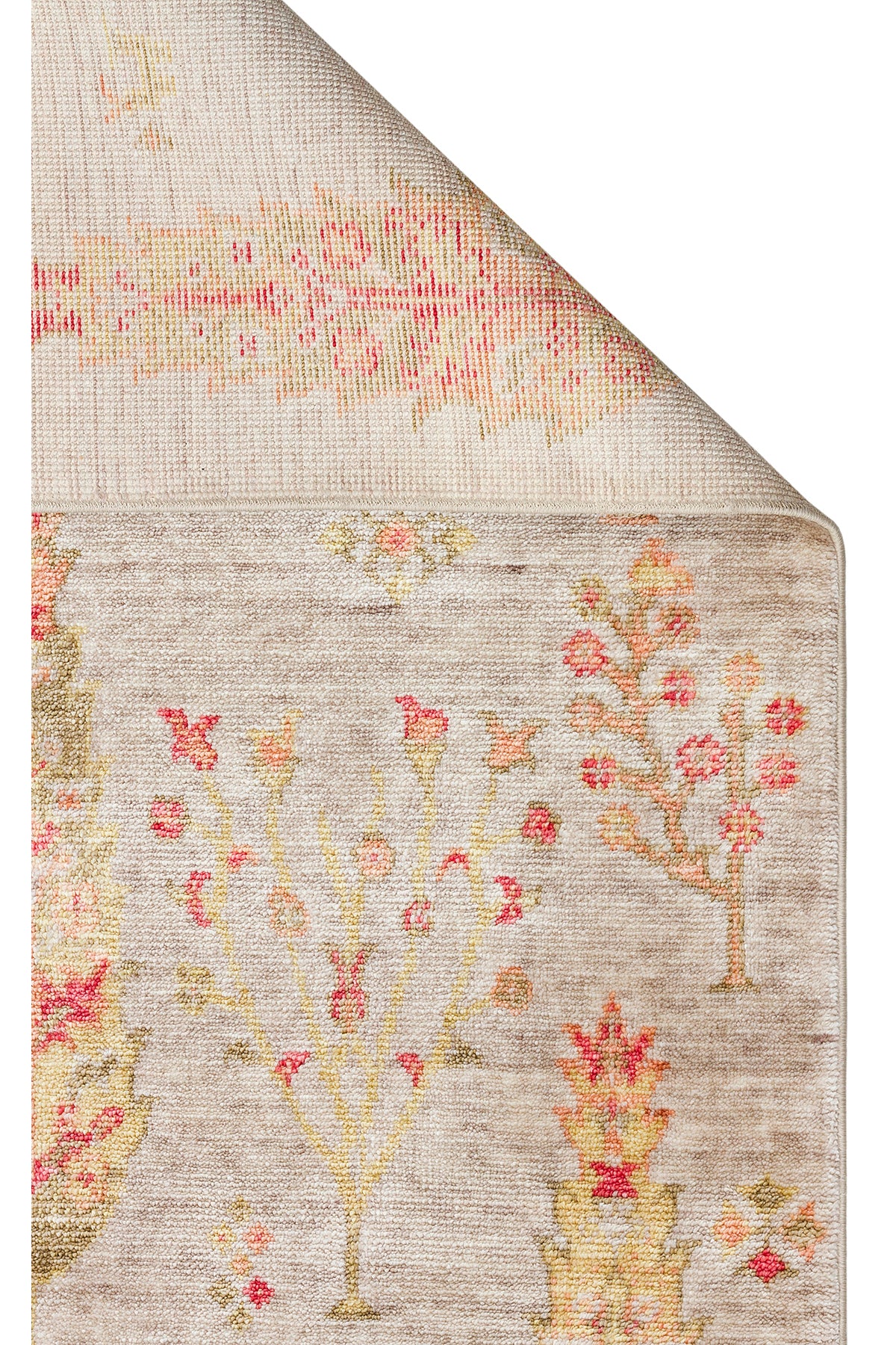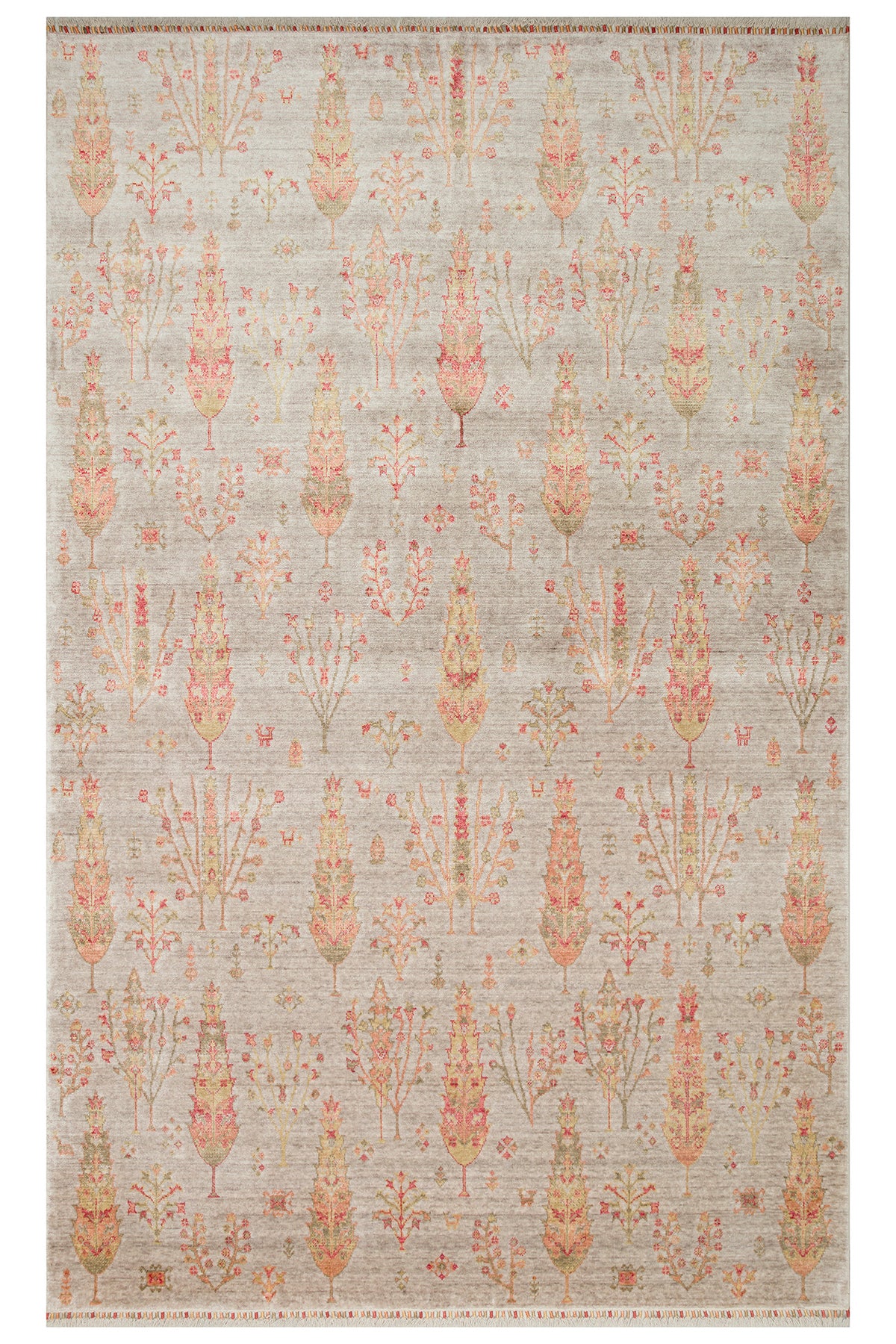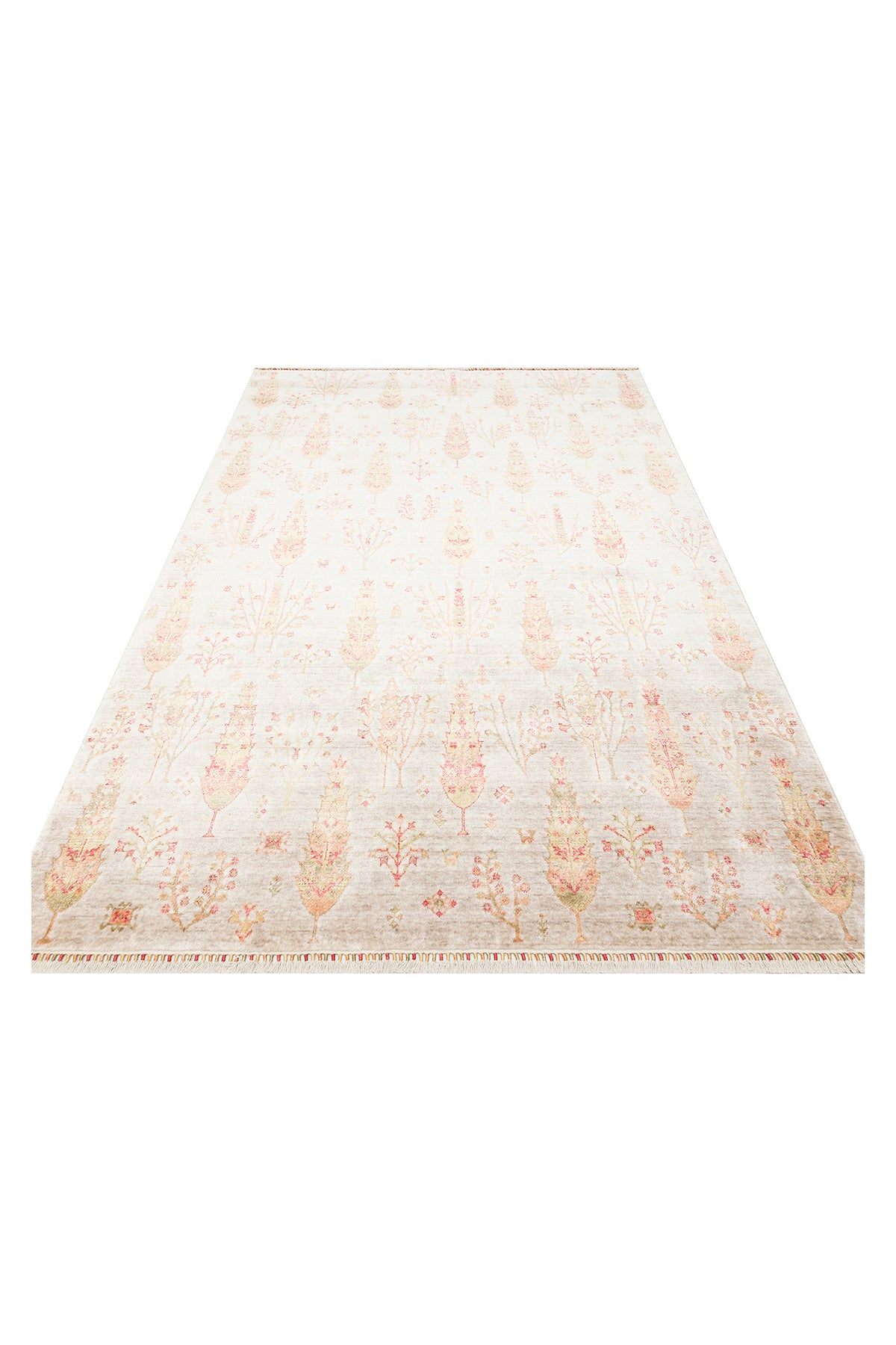 Efsun El Emeği Hayat Ağacı Desenli Bej 2 Rengi Lyocell Özel Tezgah Uşak Desen Saçaklı Salon Halısı