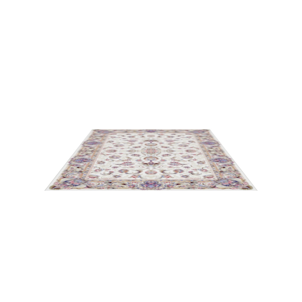İpek Harem Serisi Bambu İplik Krem Salon Halısı Klasik Desenli Sık Dokuma Doğal Yumuşak Dokulu