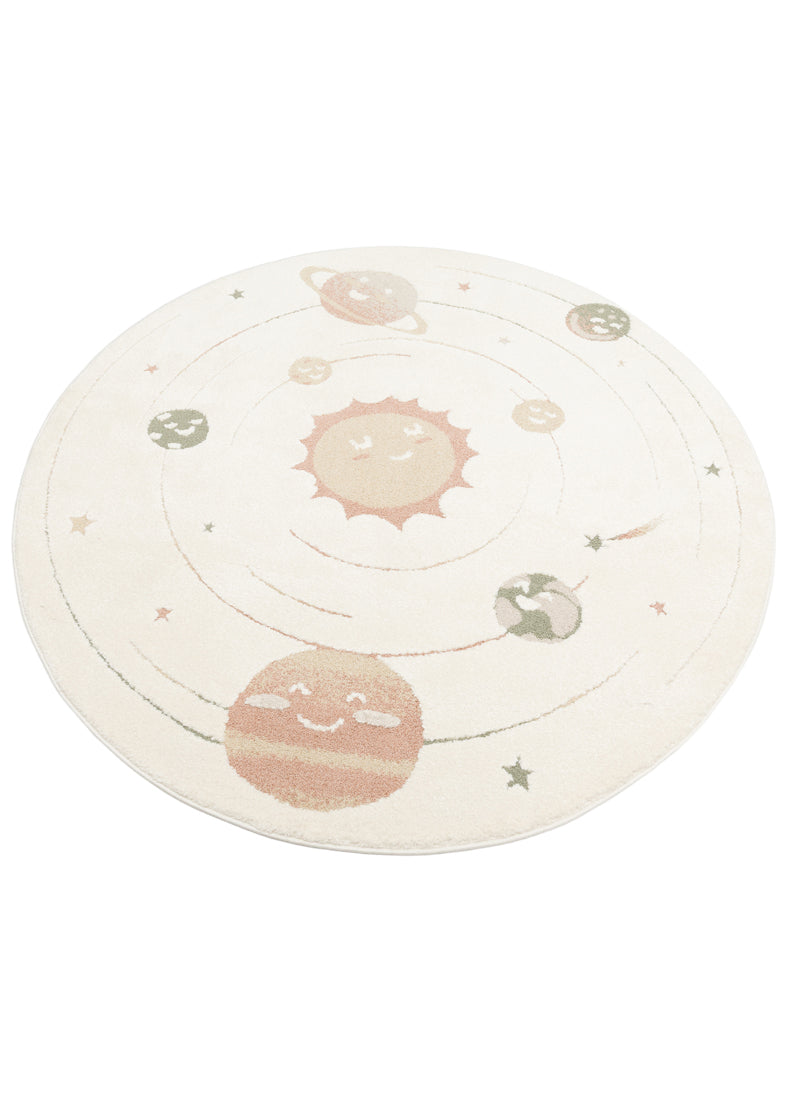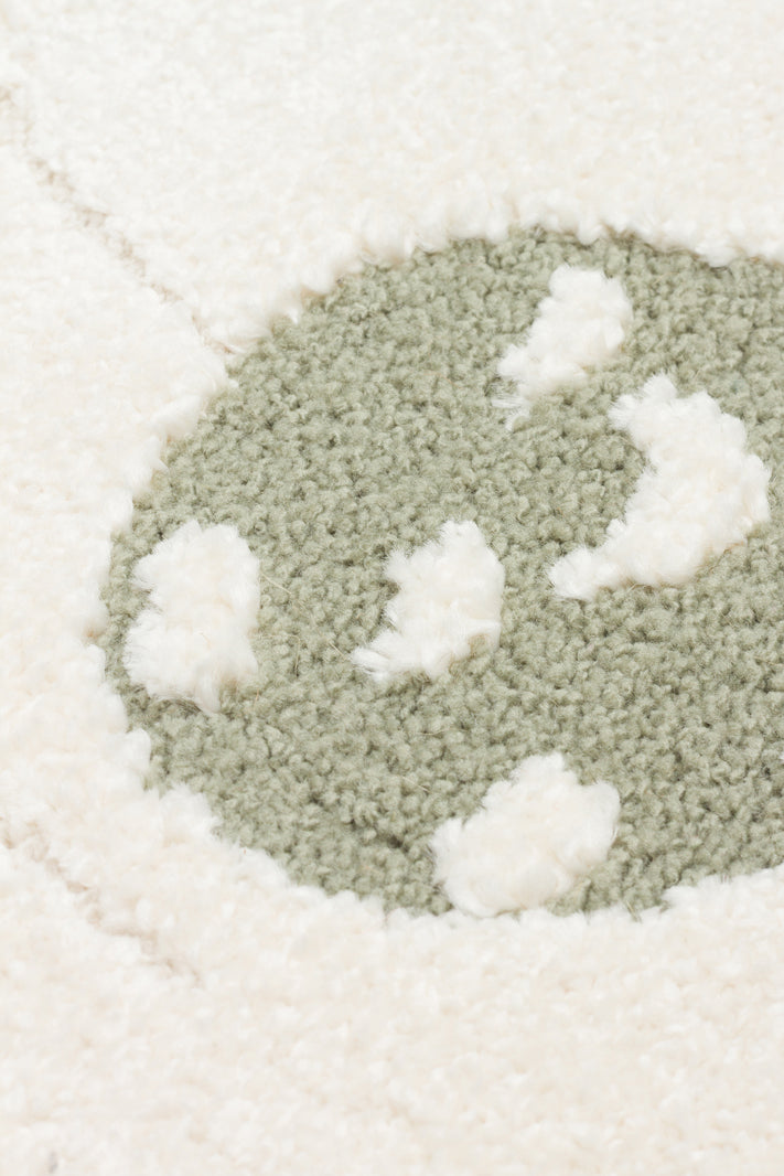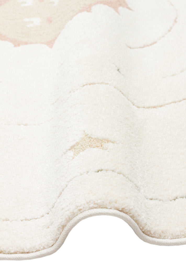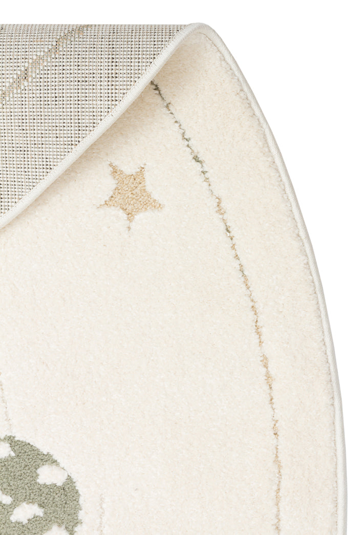 Petit Desenli Bej Renk Yuvarlak Toz Vermeyen Yumuşak Dokulu Makinede Yıkanabilir Çocuk Odası Halısı - Beyaz