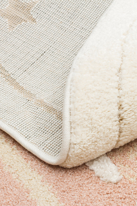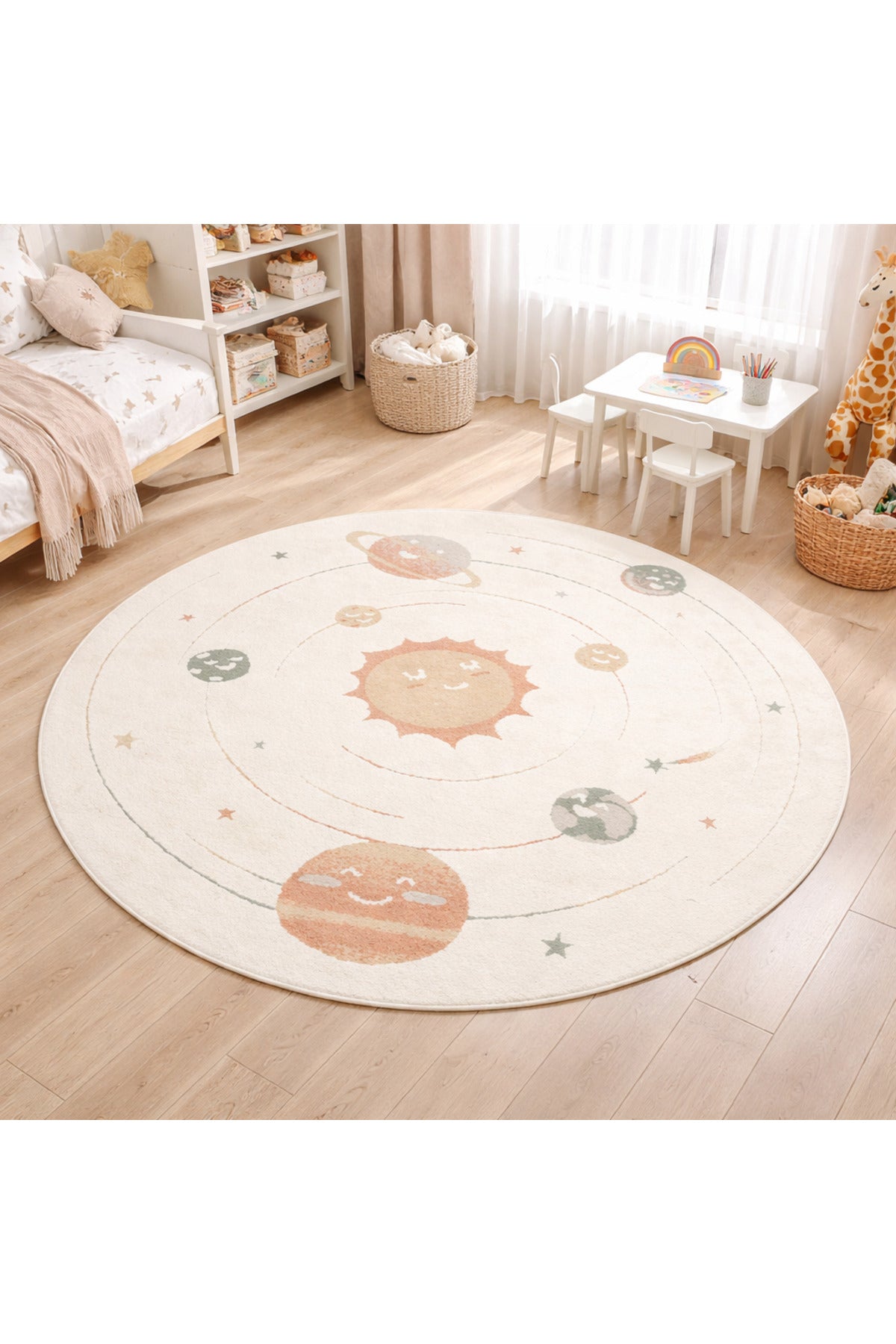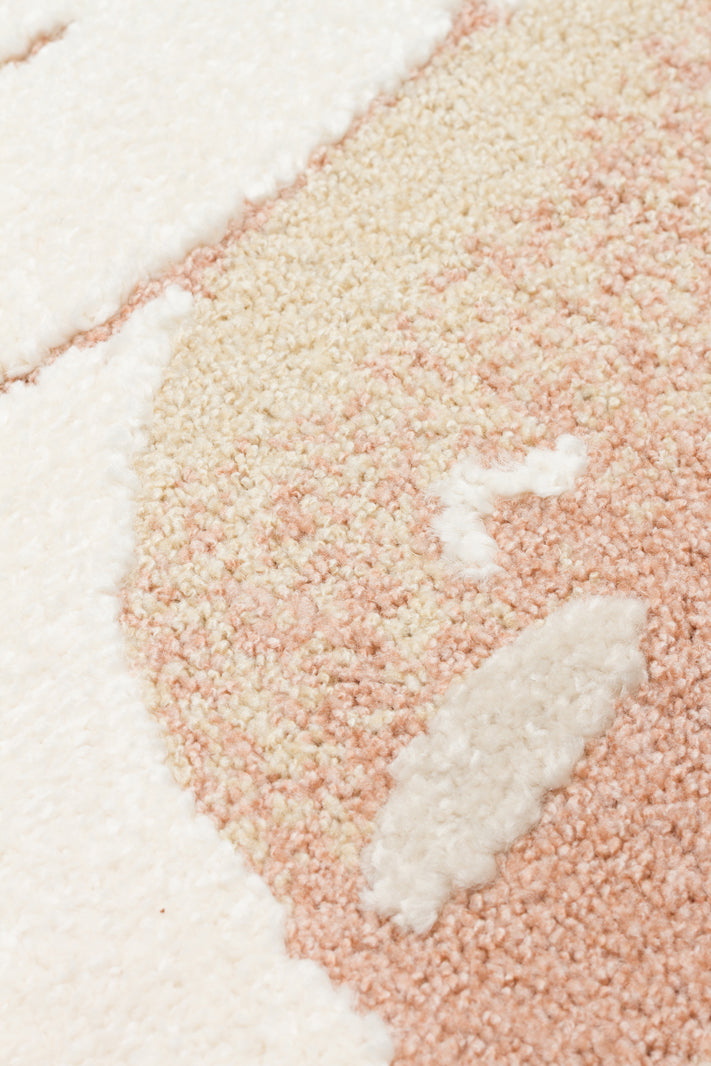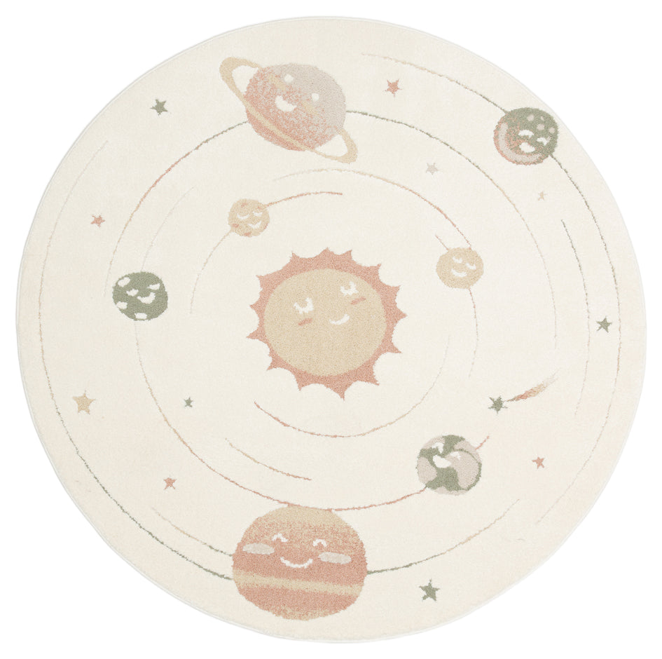 Petit Desenli Bej Renk Yuvarlak Toz Vermeyen Yumuşak Dokulu Makinede Yıkanabilir Çocuk Odası Halısı - Beyaz