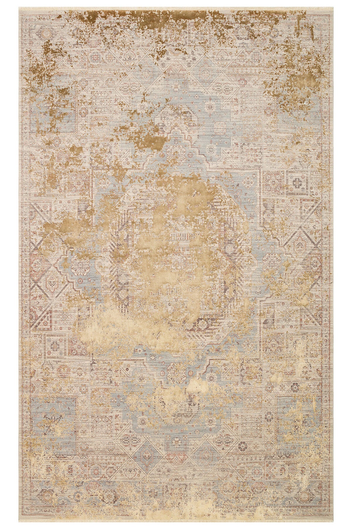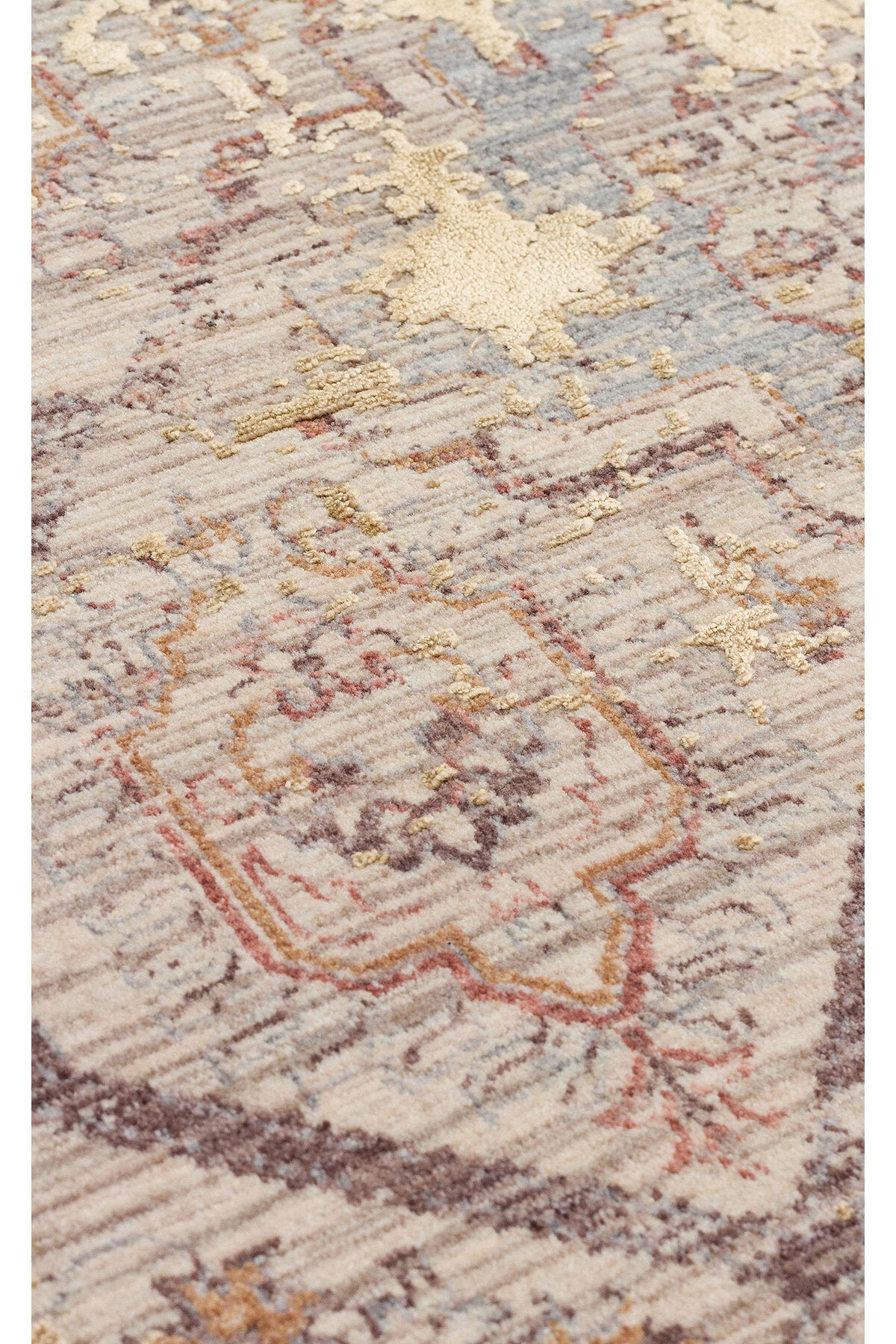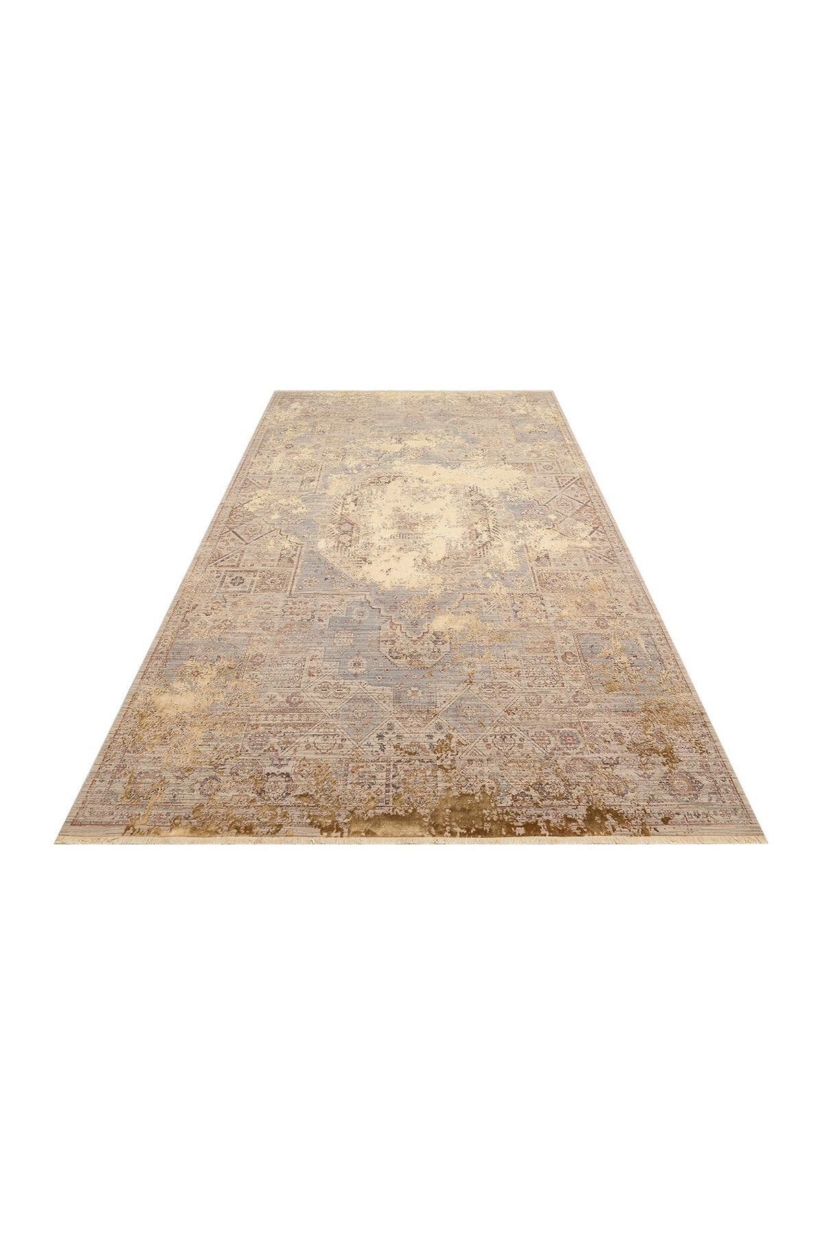 Patina Koleksiyonu’na ait bu özel halı, zamanla güzelleşen dokuların estetik anlayışından ilham alır.; Yüksek–alçak dokulu yüzeyi, ışıkla birlikte farklı açılardan derinlik hissi yaratarak mekâna sofistike bir karakter kazandırır.; Modern tasarım çizgisi, sade renk geçişleriyle birleşerek salon ve yaşam alanlarında dengeli, sakin ve şık bir atmosfer oluşturur.; Polyester ve viskon iplik karışımıyla üretilen bu halı, sık dokuma yapısı sayesinde formunu uzun süre korur ve kullanım konforu sunar.; Yumuşak dokusu zeminde konforlu bir his sağlarken, hav vermez yapısı ile toz tutulumunu minimum seviyede tutmaya yardımcı olur.; Patina Koleksiyonu’nun zamansız tasarım dili, farklı dekorasyon stilleriyle kolayca uyum sağlayarak hem modern hem de klasik detaylarla birlikte kullanılabilir.; Saçaklı kenar detayı, halıya doğal ve zarif bir bitiş kazandırırken, yüksek kaliteli üretim anlayışı uzun ömürlü kullanım sunar.; Günlük kullanıma uygun yapısıyla salon, oturma odası ve geniş yaşam alanlarında ideal bir tercih oluşturur.; Teknik Özellikler Polyester ve viskon iplik karışımı kullanılarak üretilmiştir.; Yüksek–alçak dokulu yüzey yapısına sahiptir.; Sık dokuma tekniği ile üretilmiştir.; Makine halısıdır.; Saçaklı kenar detayına sahiptir.; Hav vermez yapıdadır.; Modern salon halısı kullanımına uygundur.; Hav yüksekliği yaklaşık 6 mm’dir.; m² ağırlığı yaklaşık 2100 gr’dır.