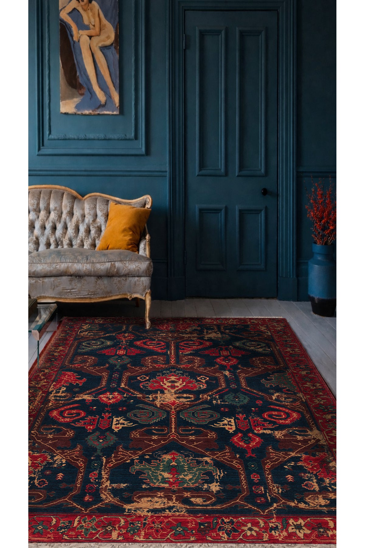Rönesans El Emeği Etnik Motifli Kırmızı Yün Geleneksel Desen Vintage Yatak Odası Salon Halısı