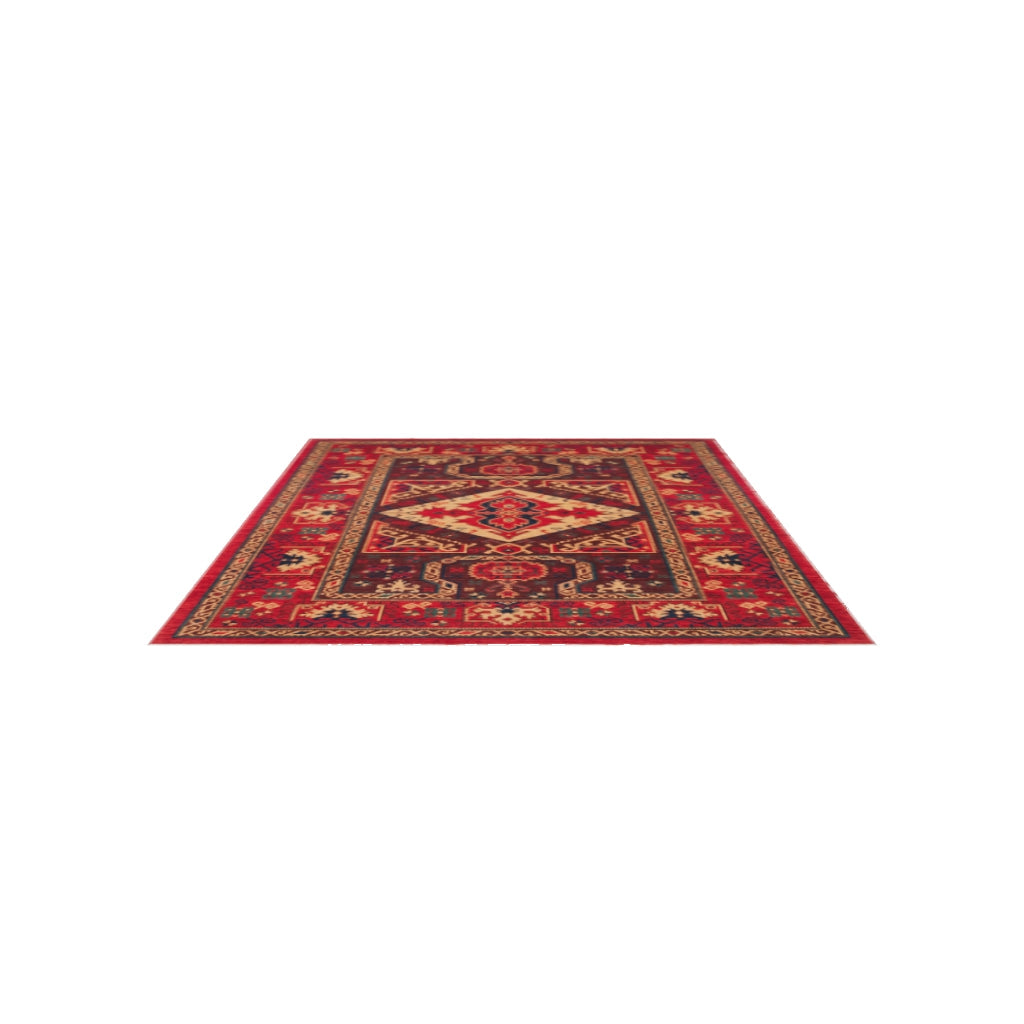 Rönesans El Emeği Etnik Motifli Vintage Kırmızı Yün Geleneksel Desenli Saçaklı Retro Salon Halısı