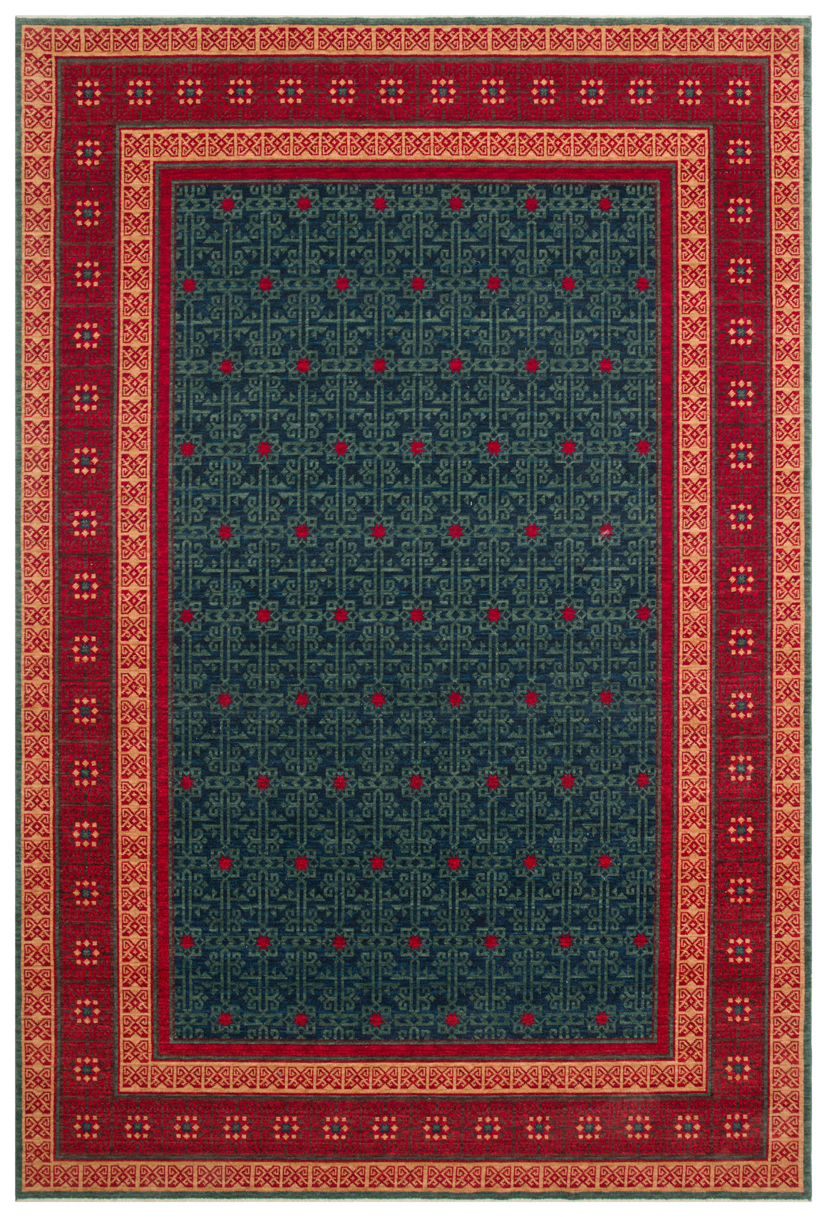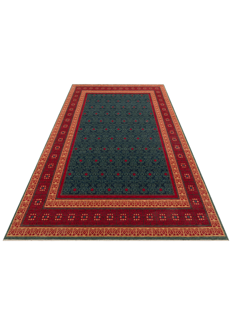 Rönesans El Dokuma Etnik Desen Lacivert Kırmızı Lacivert Yün Geleneksel Dokuma Otantik Salon Halısı
