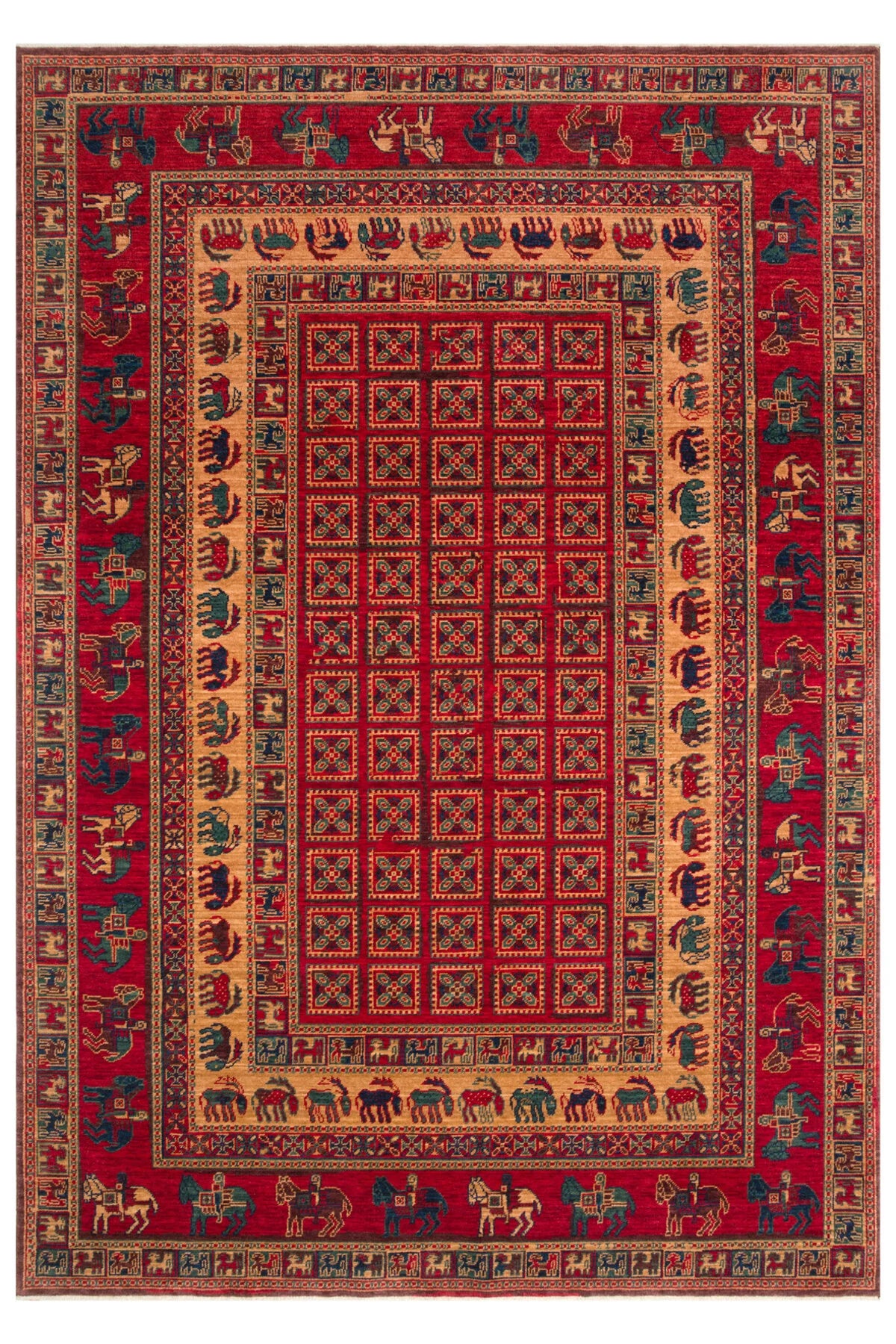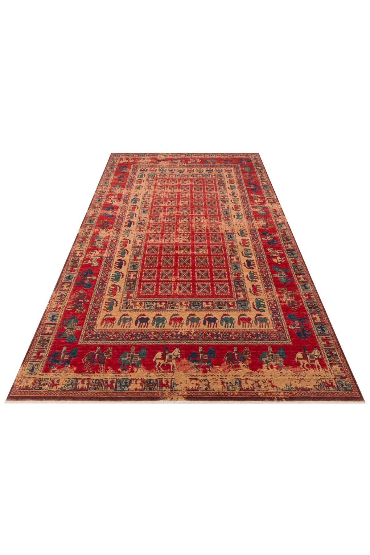Rönesans El Emeği Anadolu Desen Kırmızı Retro Yün Geleneksel Dokuma Otantik Salon Halısı