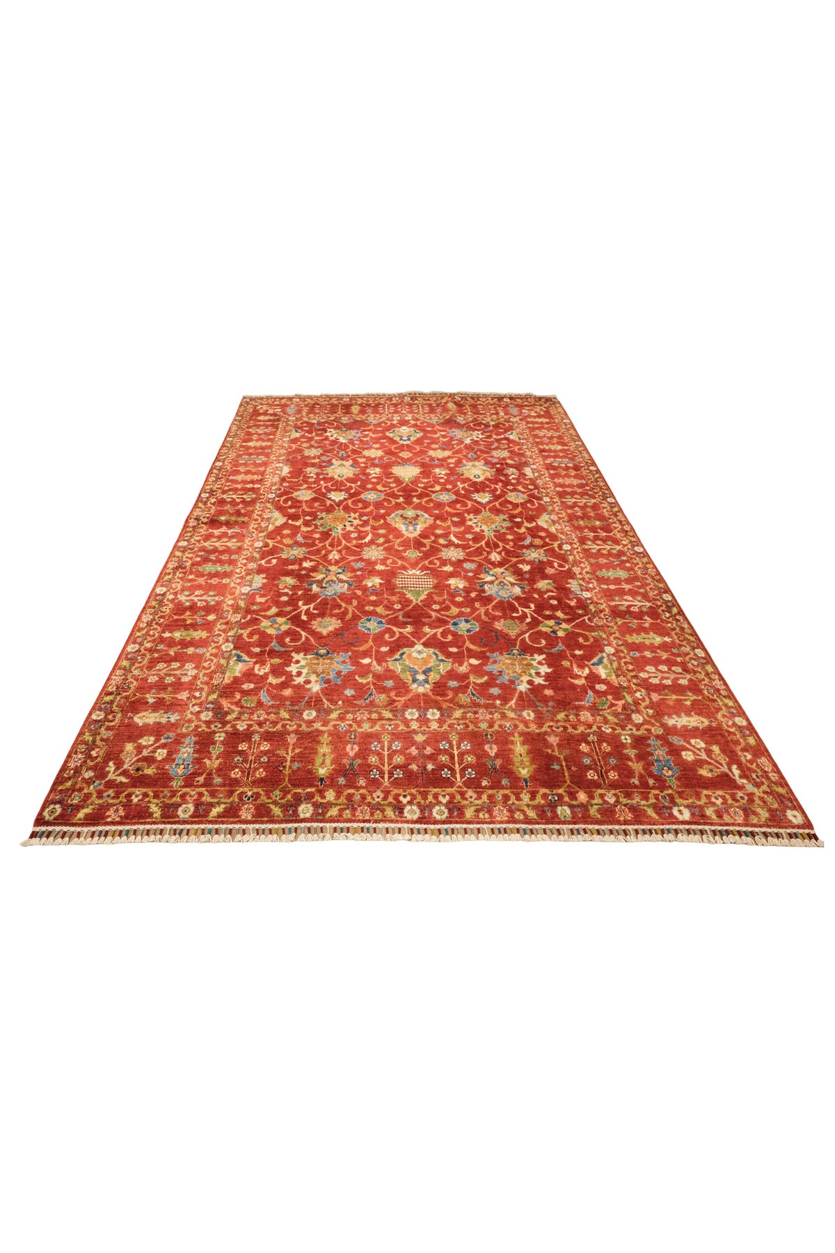 Sultani El Emeği Kırmızı Anadolu Motifli Desenli Saçaklı Modern ve Geleneksel Salon Halısı - Kırmızı
