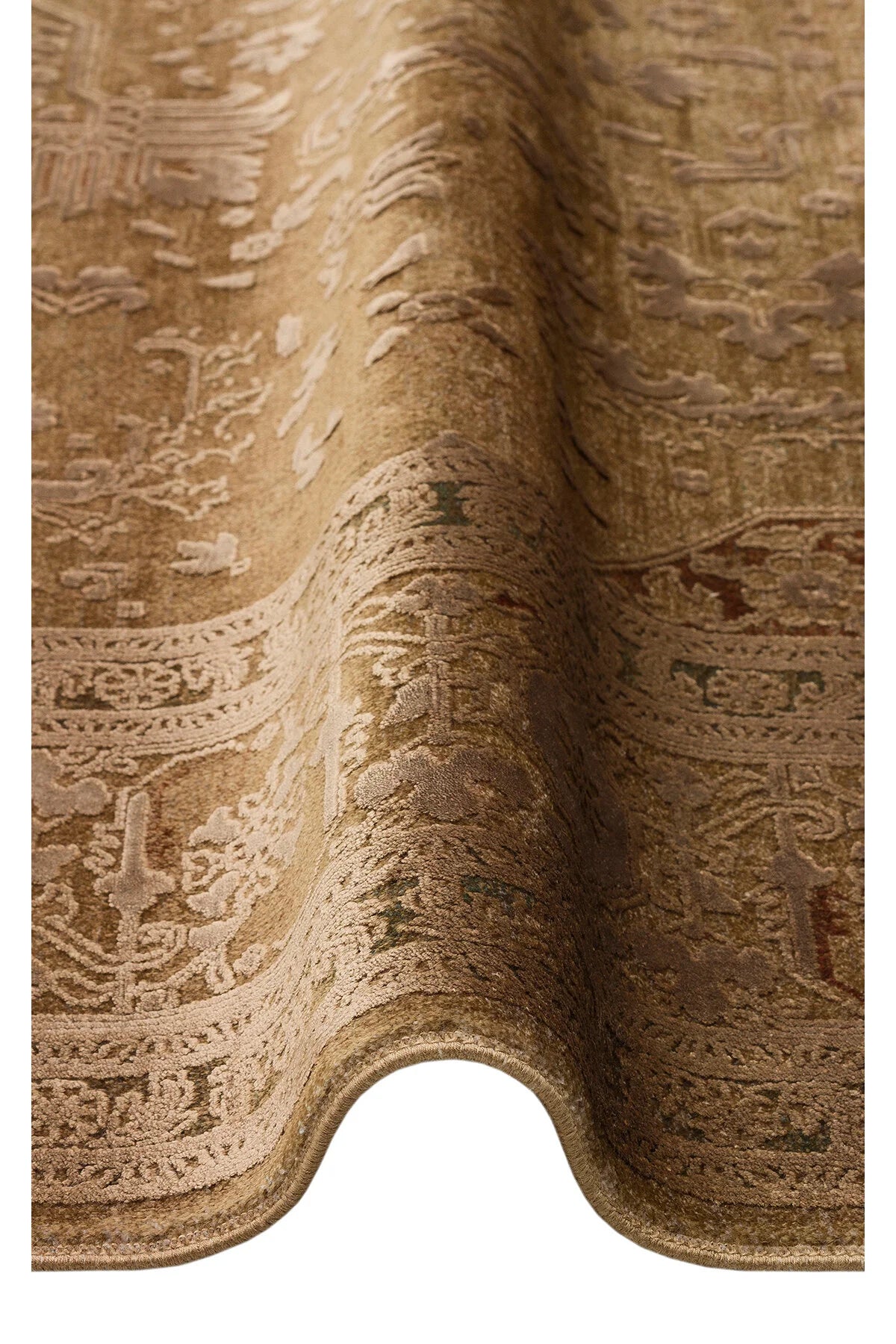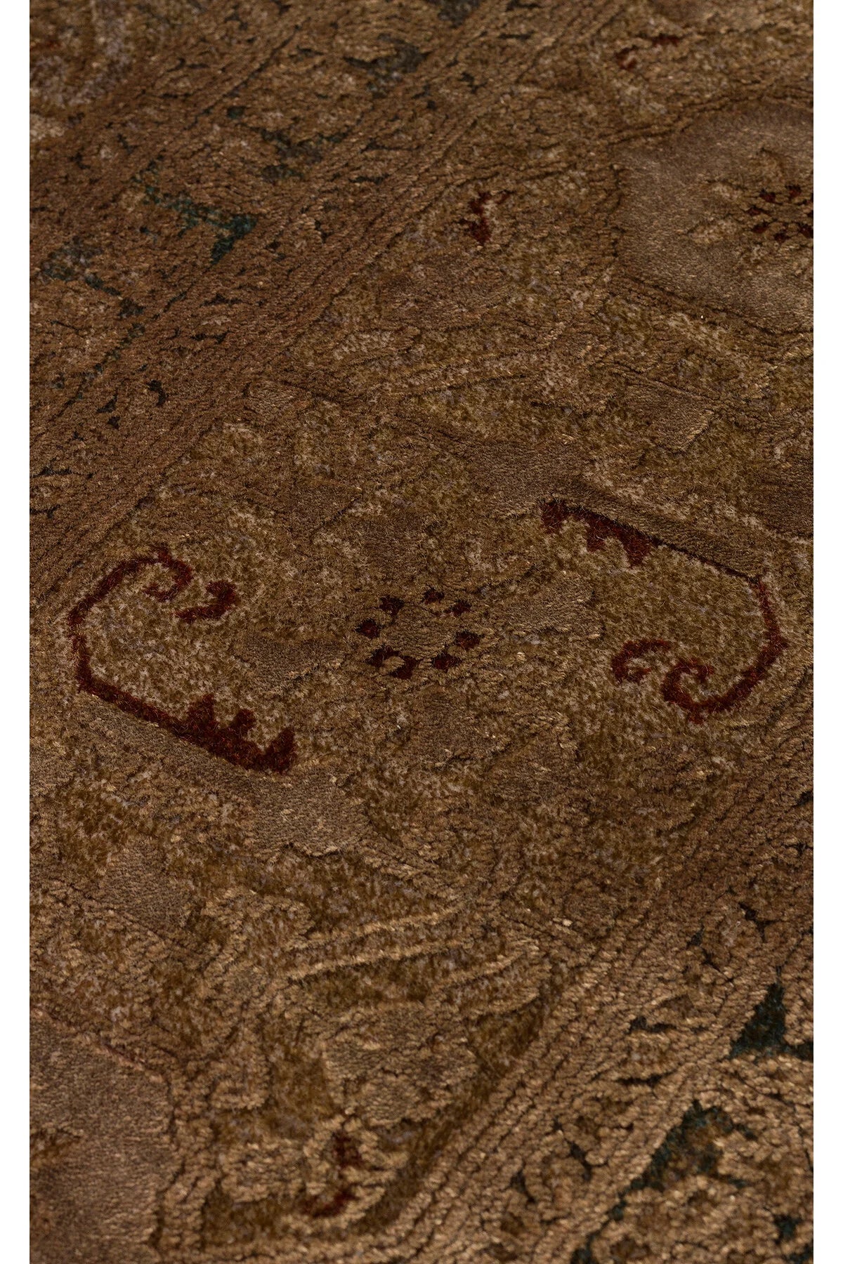 Toscana Retro Desenli Kahverengi Overdyed, Yumuşak Tuşeli Klasik Rayon Viskon Dokuma Salon Halısı